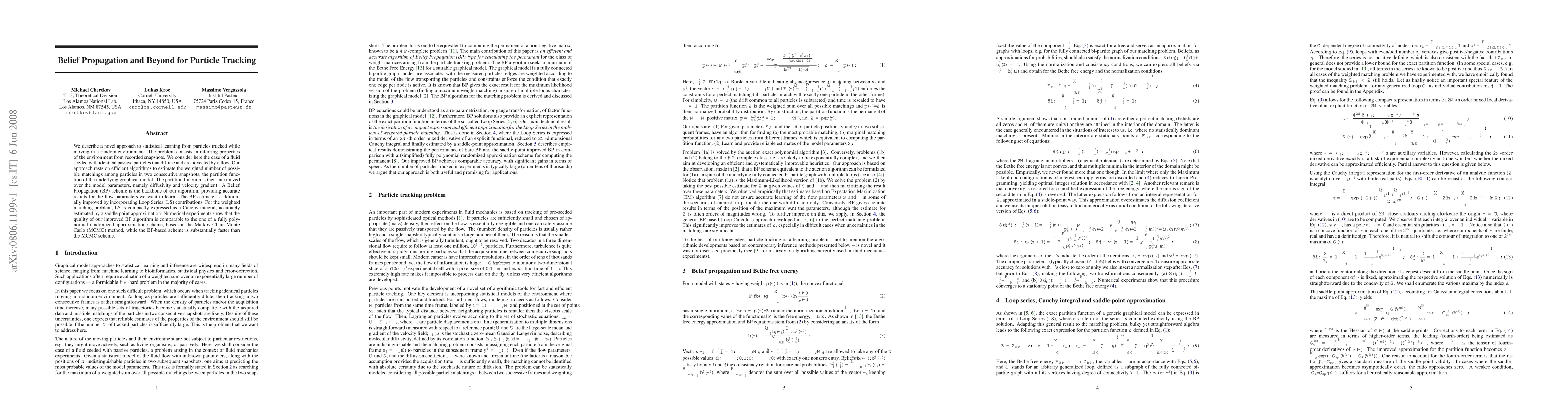 We describe a novel approach to statistical learning from particles tracked while moving in a random environment. The problem consists in inferring properties of the environment from recorded snapshots. We consider here the case of a fluid seeded with identical passive particles that diffuse and are advected by a flow. Our approach rests on efficient algorithms to estimate the weighted number of possible matchings among particles in two consecutive snapshots, the partition function of the underlying graphical model. The partition function is then maximized over the model parameters, namely diffusivity and velocity gradient. A Belief Propagation (BP) scheme is the backbone of our algorithm, providing accurate results for the flow parameters we want to learn. The BP estimate is additionally improved by incorporating Loop Series (LS) contributions. For the weighted matching problem, LS is compactly expressed as a Cauchy integral, accurately estimated by a saddle point approximation. Numerical experiments show that the quality of our improved BP algorithm is comparable to the one of a fully polynomial randomized approximation scheme, based on the Markov Chain Monte Carlo (MCMC) method, while the BP-based scheme is substantially faster than the MCMC scheme.