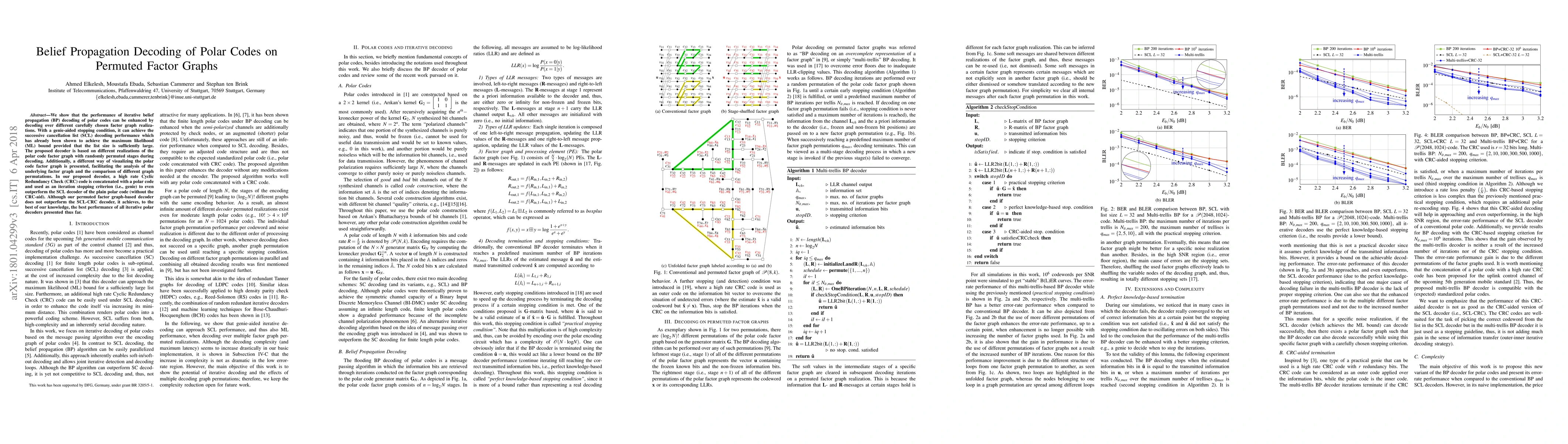 This paper proposes an enhanced iterative belief propagation decoder for polar codes by decoding over permuted factor graph realizations, achieving performance close to successive cancellation list decoding. The decoder uses a high rate CRC code as a stopping criterion to outperform plain polar code SCL decoding.