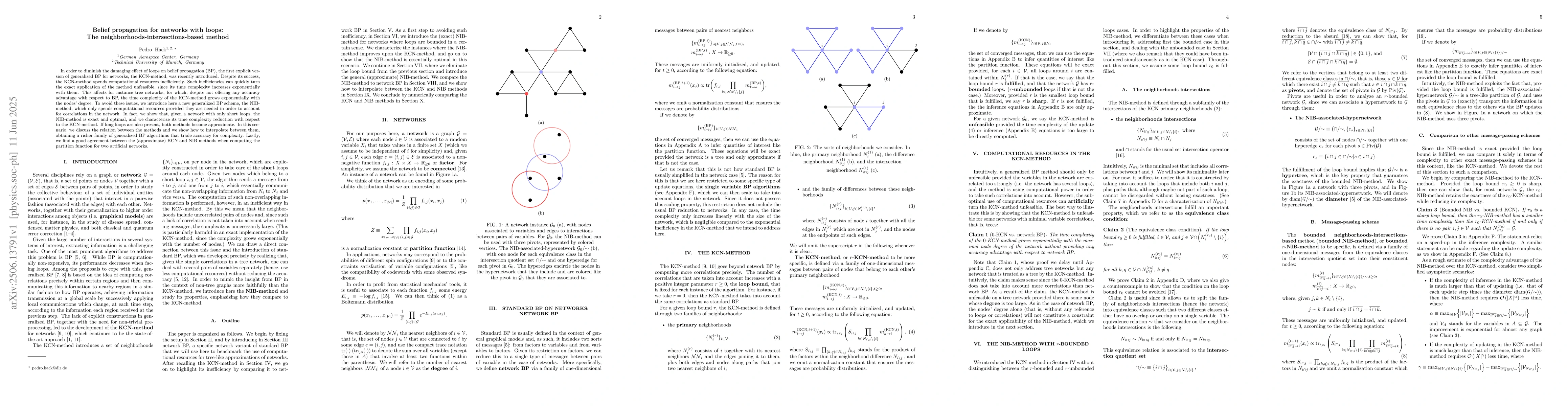 The research introduces the NIB-method, a new generalized Belief Propagation (BP) scheme for networks with loops, which optimizes resource usage. Unlike the KCN-method, NIB-method only allocates resources when necessary, reducing computational inefficiencies, especially for networks with short loops. The paper also explores the relationship between KCN and NIB methods for networks with long loops, allowing for a tunable trade-off between accuracy and complexity.