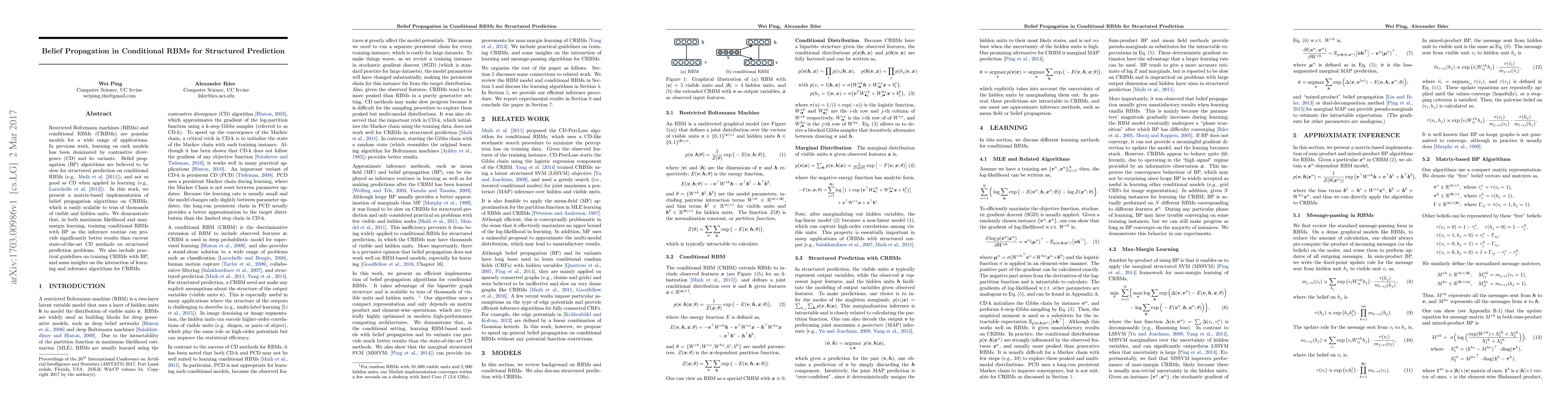 This paper proposes a scalable matrix-based belief propagation algorithm for training conditional RBMs, demonstrating superior performance over contrastive divergence methods in structured prediction tasks. Practical guidelines and insights on the interplay between learning and inference algorithms for CRBMs are also provided.