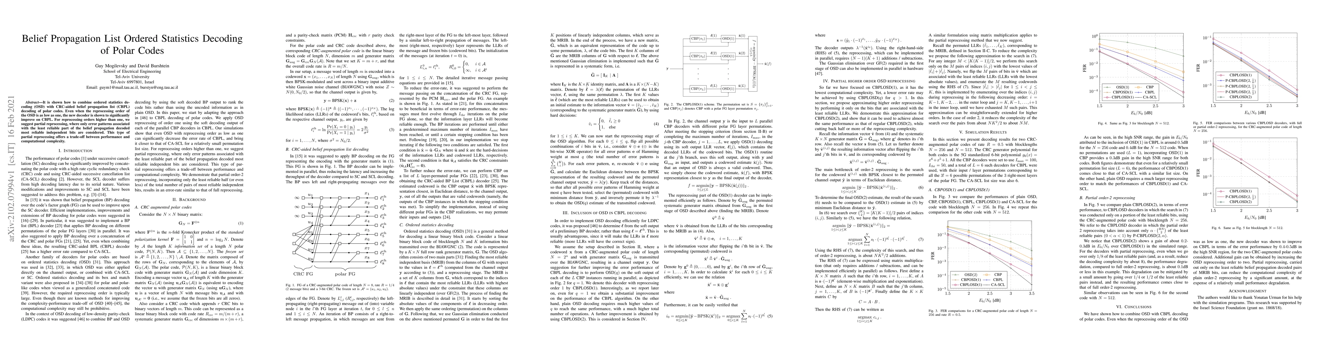 The paper proposes a new decoding method combining ordered statistics decoding (OSD) with CRC-aided belief propagation list (CBPL) for polar codes, significantly improving performance even with low reprocessing orders. It also introduces partial reprocessing for higher orders, balancing performance and computational complexity.