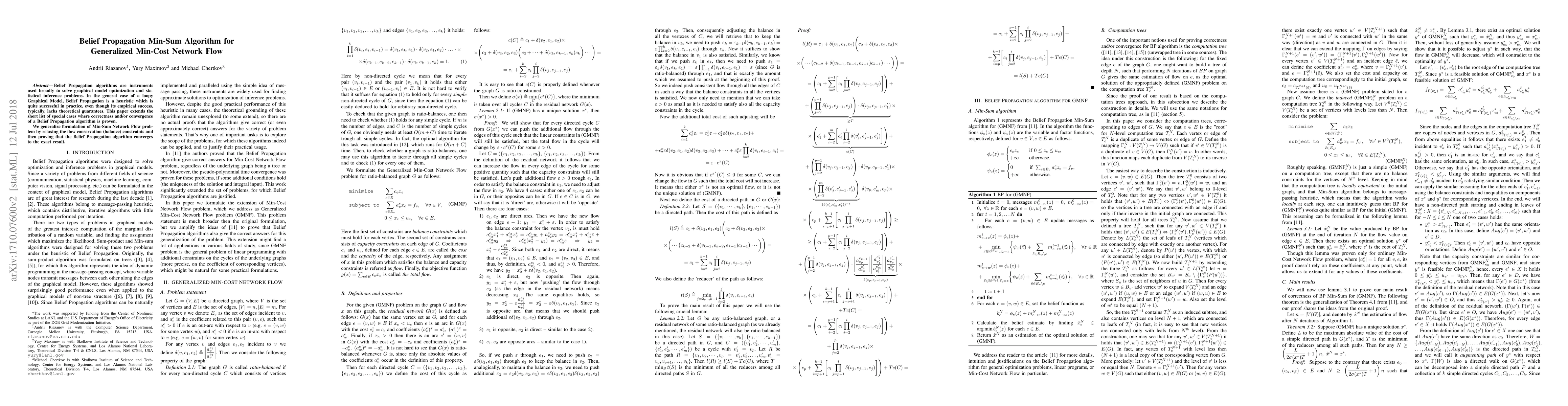 Belief Propagation algorithms are instruments used broadly to solve graphical model optimization and statistical inference problems. In the general case of a loopy Graphical Model, Belief Propagation is a heuristic which is quite successful in practice, even though its empirical success, typically, lacks theoretical guarantees. This paper extends the short list of special cases where correctness and/or convergence of a Belief Propagation algorithm is proven. We generalize formulation of Min-Sum Network Flow problem by relaxing the flow conservation (balance) constraints and then proving that the Belief Propagation algorithm converges to the exact result.