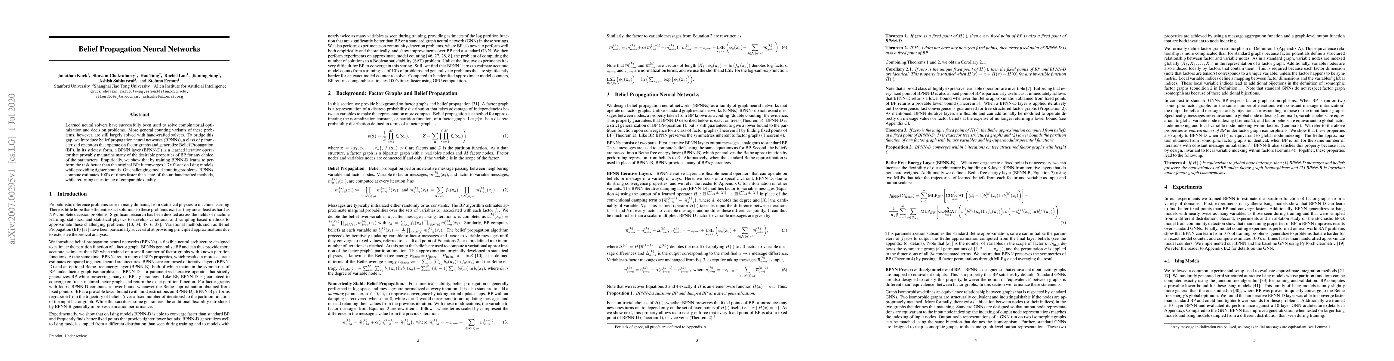 Belief Propagation Neural Networks (BPNNs) introduce a new class of parameterized operators that generalize Belief Propagation for solving counting variants of combinatorial optimization problems. Trained BPNNs outperform traditional Belief Propagation, converging faster on Ising models and providing tighter bounds, while also significantly speeding up model counting on challenging problems.