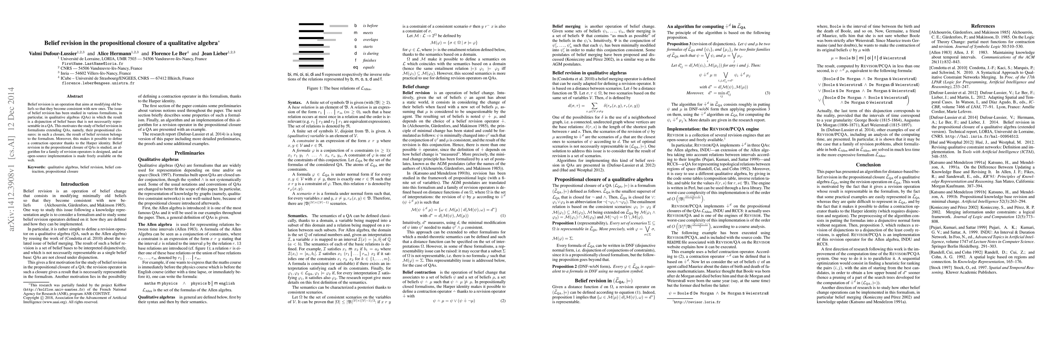 Belief revision is an operation that aims at modifying old be-liefs so that they become consistent with new ones. The issue of belief revision has been studied in various formalisms, in particular, in qualitative algebras (QAs) in which the result is a disjunction of belief bases that is not necessarily repre-sentable in a QA. This motivates the study of belief revision in formalisms extending QAs, namely, their propositional clo-sures: in such a closure, the result of belief revision belongs to the formalism. Moreover, this makes it possible to define a contraction operator thanks to the Harper identity. Belief revision in the propositional closure of QAs is studied, an al-gorithm for a family of revision operators is designed, and an open-source implementation is made freely available on the web.