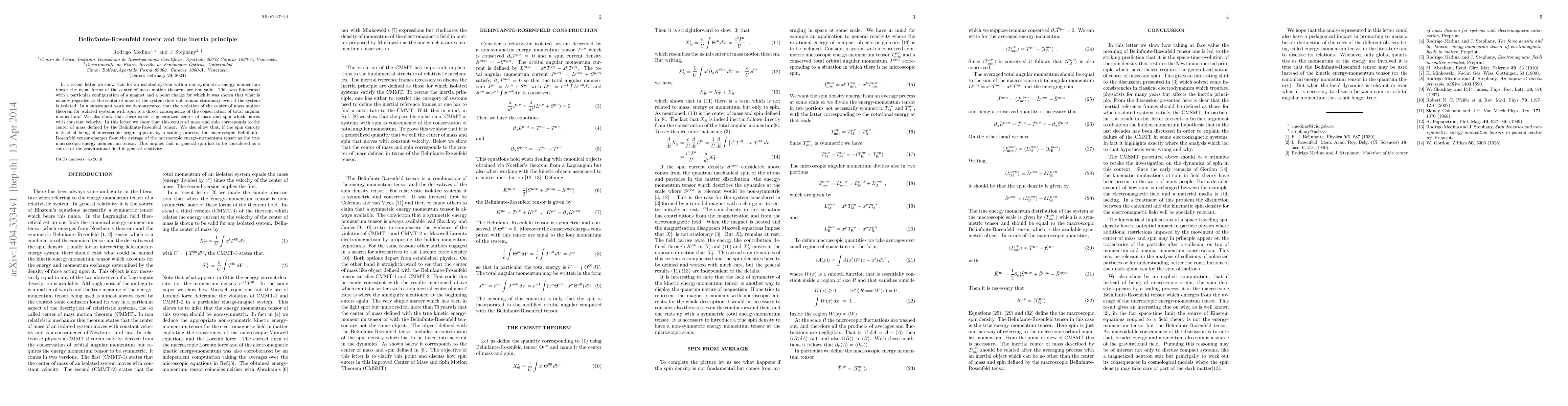 In a recent letter we show that for an isolated system with a non symmetric energy momentum tensor the usual forms of the center of mass motion theorem are not valid. This was illustrated with a particular configuration of a magnet and a point charge for which it was shown that what is usually regarded as the center of mass of the system does not remain stationary even if the system is isolated. In a subsequent work we demonstrated that the violation of the center of mass motion theorem for isolated systems with spin is a direct consequence of the conservation of total angular momentum. We also show that there exists a generalized center of mass and spin which moves with constant velocity. In this letter we show that this center of mass and spin corresponds to the center of mass defined by the Belinfante-Rosenfeld tensor. We also show that, if the spin density instead of being of microscopic origin appears by a scaling process, the macroscopic Belinfante-Rosenfeld tensor emerges from the average of the microscopic energy-momentum tensor as the true macroscopic energy momentum tensor. This implies that in general spin has to be considered as a source of the gravitational field in general relativity.