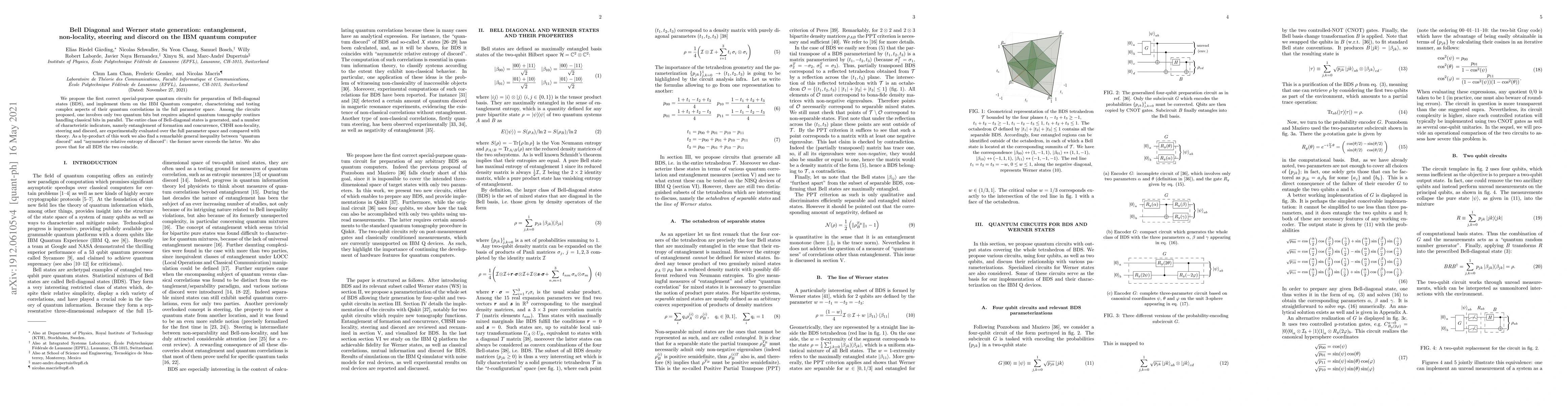 This paper presents specialized quantum circuits for generating Bell-diagonal states on the IBM Quantum computer, evaluating entanglement, non-locality, steering, and discord across the full parameter space. It also establishes a significant inequality between quantum discord and asymmetric relative entropy of discord.