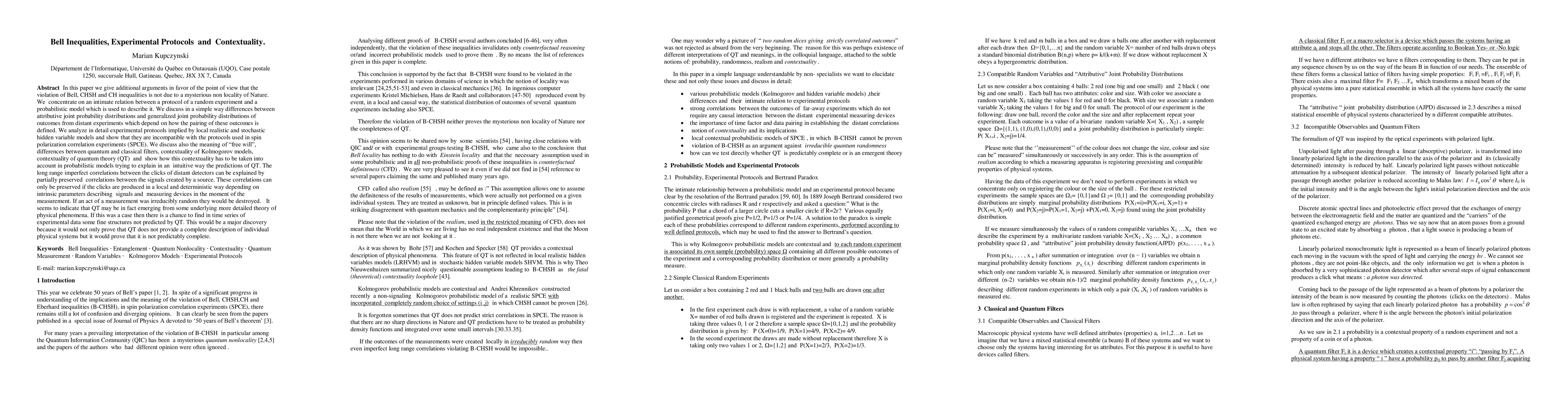 The violation of Bell, CHSH and CH inequalities indicates only that the assumption of "conterfactual definiteness" and/or the probabilistic models used in proofs were incorrect. In this paper we discuss in detail an intimate relation between experimental protocols and probabilistic models. In particular we show that local realistic and stochastic hidden variable models are inconsistent with the experimental protocols used in spin polarization correlation experiments. In particular these models neglect a contextual character of quantum theory (QT) and do not describe properly quantum measurements. We argue that the violation of various inequalities gives arguments against the irreducible randomness of act of the measurement. Therefore quantum probabilities are reducible what means that QT is emergent. In this case one could expect to discover in time series of data some unpredicted fine structures proving that QT is not predictably complete what would be a major discovery.