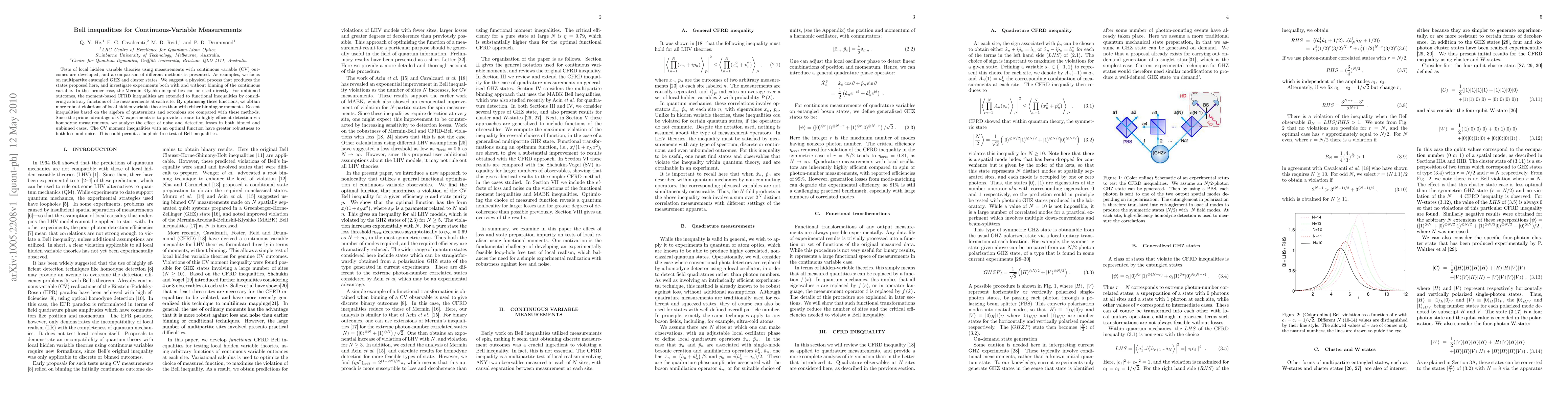 This paper develops tests of local hidden variable theories using continuous-variable measurements, comparing various methods and demonstrating that optimal functional inequalities provide more robust violations than binning or moments. It also evaluates the impact of noise and detection losses, showing that CV moment inequalities are more resilient, potentially enabling a loophole-free Bell test.