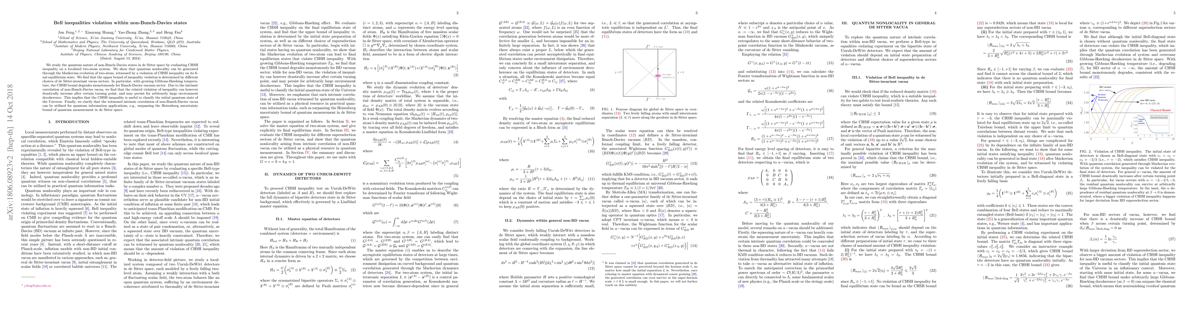 This paper investigates the quantum nonlocality in non-Bunch-Davies states within de Sitter space, demonstrating CHSH inequality violations that reveal the intrinsic correlations of these states. The study shows that while the CHSH bound degrades for Bunch-Davies vacuum, non-Bunch-Davies vacua can exhibit significant inequality violations, suggesting potential applications in quantum information.