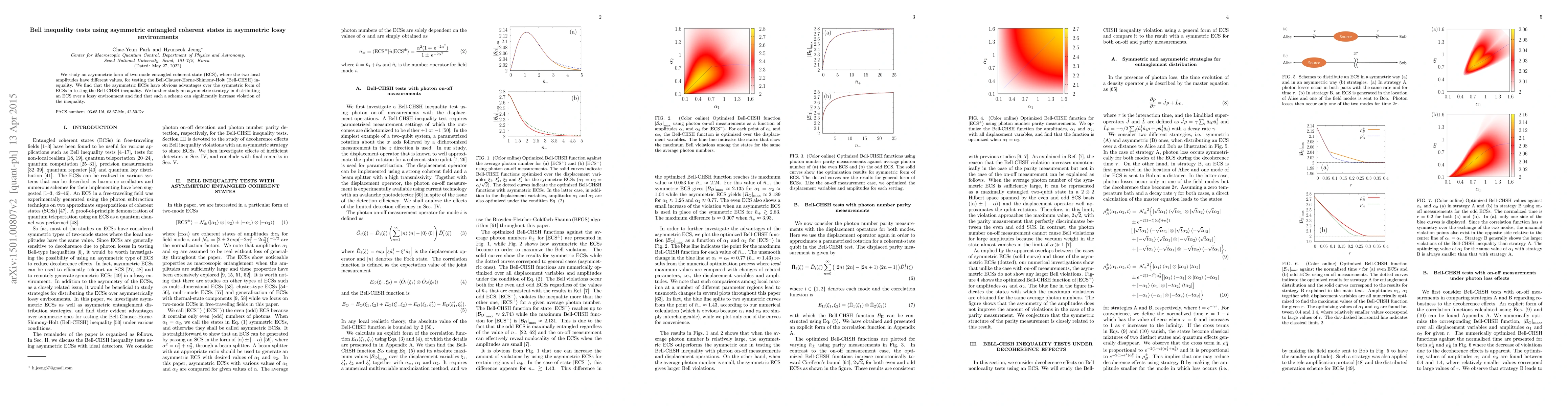We study an asymmetric form of two-mode entangled coherent state (ECS), where the two local amplitudes have different values, for testing the Bell-Clauser-Horne-Shimony-Holt (Bell-CHSH) inequality. We find that the asymmetric ECSs have obvious advantages over the symmetric form of ECSs in testing the Bell-CHSH inequality. We further study an asymmetric strategy in distributing an ECS over a lossy environment and find that such a scheme can significantly increase violation of the inequality.