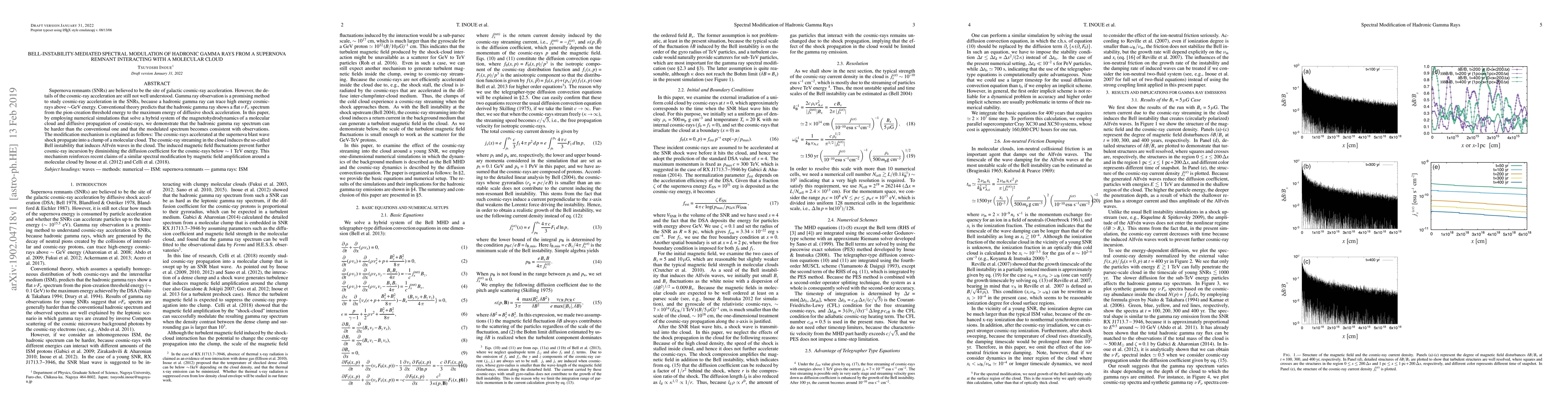 Supernova remnants (SNRs) are believed to be the site of galactic cosmic-ray acceleration. However, the details of the cosmic-ray acceleration are still not well understood. Gamma ray observation is a promising method to study cosmic-ray acceleration in the SNRs, because a hadronic gamma ray can trace high energy cosmic-rays above ~GeV energy. Conventional theory predicts that the hadronic gamma ray shows a flat vFv spectrum from the pion-creation threshold energy to the maximum energy of diffusive shock acceleration. In this paper, by employing numerical simulations that solve a hybrid system of the magnetohydrodynamics of a molecular cloud and diffusive propagation of cosmic-rays, we demonstrate that the hadronic gamma ray spectrum can be harder than the conventional one and that the modulated spectrum becomes consistent with observations. The modification mechanism is explained as follows: The cosmic-rays accelerated at the supernova blast wave shock propagate into a clump of a molecular cloud. The cosmic-ray streaming in the cloud induces the so-called Bell instability that induces Alfven waves in the cloud. The induced magnetic field fluctuations prevent further cosmic-ray incursion by diminishing the diffusion coefficient for the cosmic-rays below ~1 TeV energy. This mechanism reinforces recent claims of a similar spectral modification by magnetic field amplification around a molecular cloud by Inoue et al.(2012) and Celli et al.(2018).