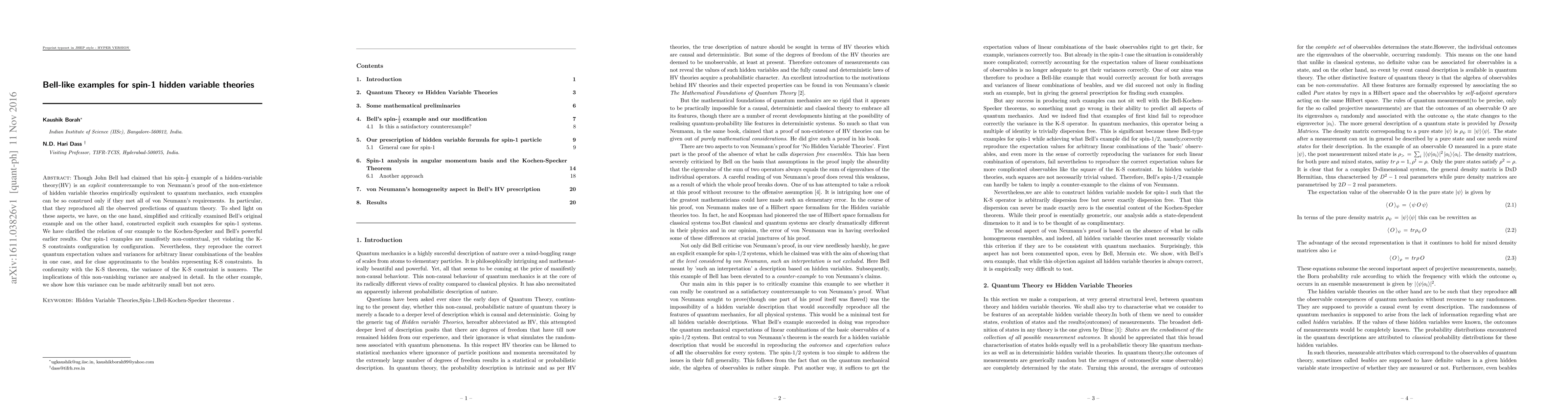 Though John Bell had claimed that his spin-1/2 example of a hidden-variable theory(HV) is an \emph{explicit} counterexample to von Neumann's proof of the non-existence of hidden variable theories empirically equivalent to quantum mechanics, such examples can be so construed only if they met all of von Neumann's requirements. In particular, that they reproduced all the observed predictions of quantum theory. To shed light on these aspects, we have, on the one hand, simplified and critically examined Bell's original example and on the other hand, constructed explicit such examples for spin-1 systems. We have clarified the relation of our example to the Kochen-Specker and Bell's powerful earlier results. Our spin-1 examples are manifestly non-contextual, yet violating the K-S constraints configuration by configuration. Nevertheless, they reproduce the correct quantum expectation values and variances for arbitrary linear combinations of the beables in one case, and for close approximants to the beables representing K-S constraints. In conformity with the K-S theorem, the variance of the K-S constraint is nonzero. The implications of this non-vanishing variance are analysed in detail. In the other example, we show how this variance can be made arbitrarily small but not zero.