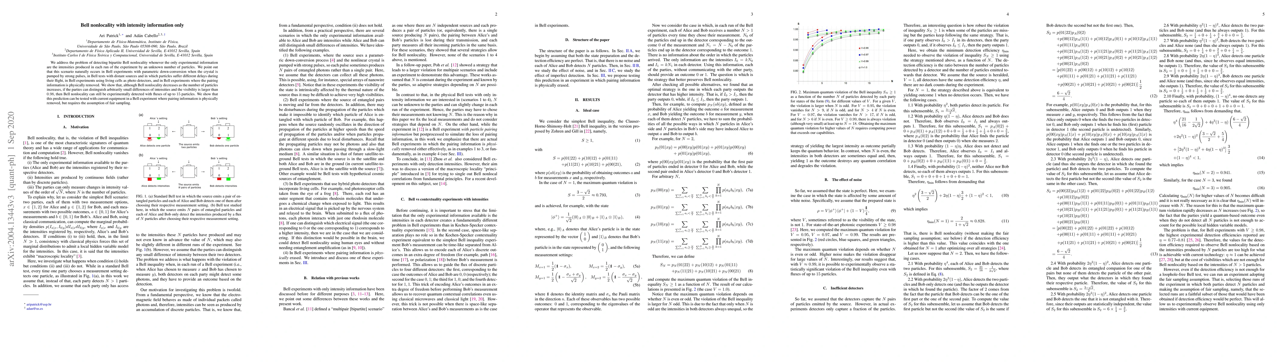 We address the problem of detecting bipartite Bell nonlocality whenever the only experimental information are the intensities produced in each run of the experiment by an unknown number of particles. We point out that this scenario naturally occurs in Bell experiments with parametric down-conversion when the crystal is pumped by strong pulses, in Bell tests with distant sources and in which particles suffer different delays during their flight, in Bell experiments using living cells as photo detectors, and in Bell experiments where the pairing information is physically removed. We show that, although Bell nonlocality decreases as the number of particles increases, if the parties can distinguish arbitrarily small differences of intensities and the visibility is larger than $0.98$, then Bell nonlocality can still be experimentally detected with fluxes of up to $15$ particles. We show that this prediction can be tested with current equipment in a Bell experiment where pairing information is physically removed, but requires the assumption of fair sampling.