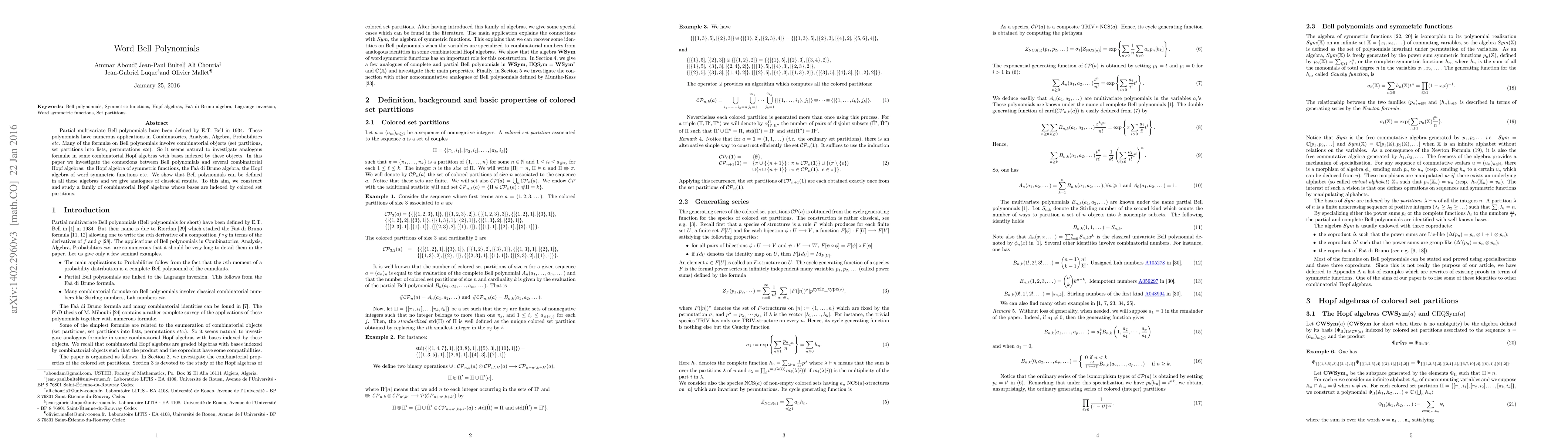 This paper explores the application of partial multivariate Bell polynomials within combinatorial Hopf algebras, particularly focusing on the algebra of symmetric functions. It demonstrates how Bell polynomials can be reformulated in terms of symmetric functions and shows that these formulations are more transparent when viewed through other Hopf algebras, highlighting connections with the Faà di Bruno Hopf algebra and the Lagrange-Bürmann formula.