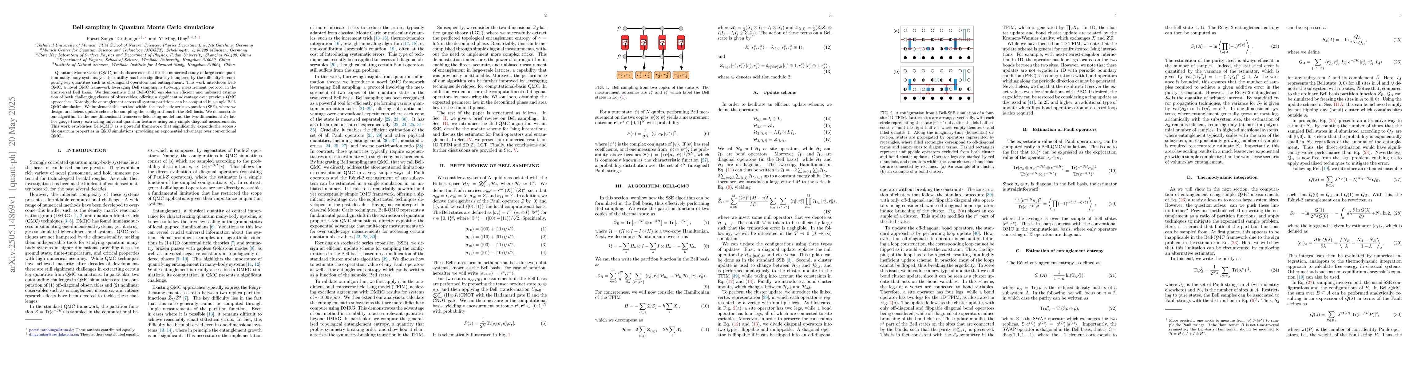 The research introduces Bell-QMC, a novel Quantum Monte Carlo (QMC) framework utilizing Bell sampling, a two-copy measurement protocol in the transversal Bell basis. It's implemented within the stochastic series expansion (SSE) with an efficient update scheme for Bell basis configuration sampling.
