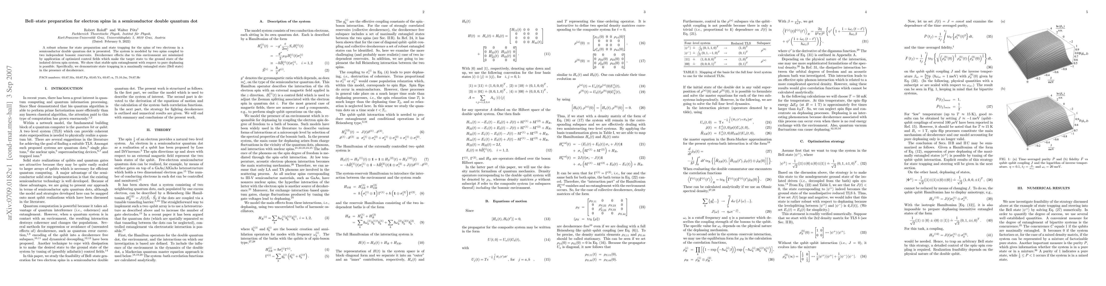 This paper presents a robust scheme for preparing and trapping entangled electron spins in a semiconductor double quantum dot, minimizing decoherence through optimized control fields. The authors demonstrate stable spin entanglement in a Bell state despite environmental effects.