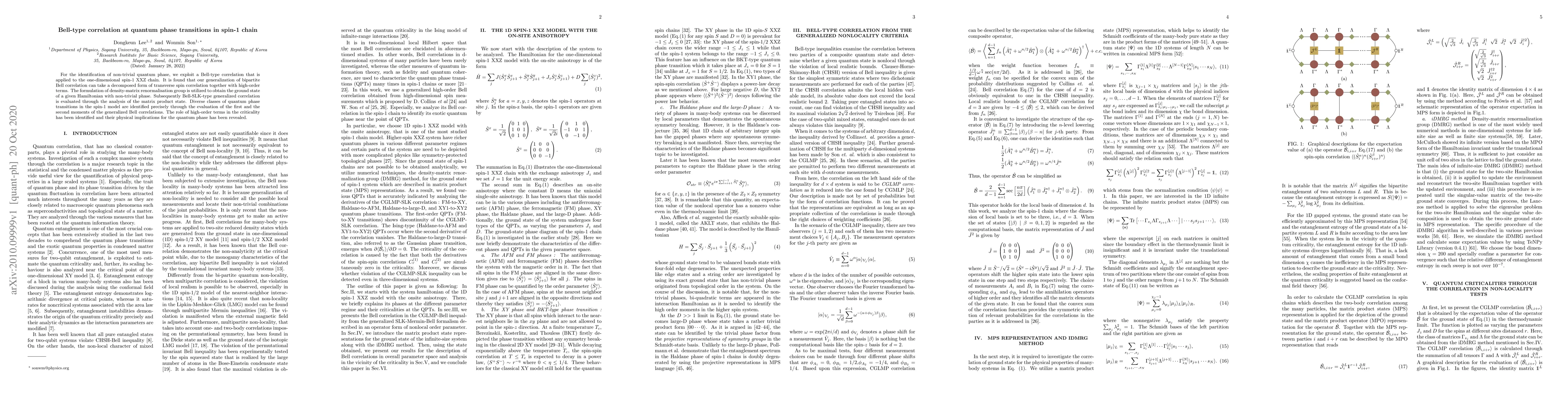For the identification of non-trivial quantum phase, we exploit a Bell-type correlation that is applied to the one-dimensional spin-1 XXZ chain. It is found that our generalization of bipartite Bell correlation can take a decomposed form of transverse spin correlation together with high-order terms. The formulation of density-matrix renormalisation group is utilized to obtain the ground state of a given Hamiltonian with non-trivial phase. Subsequently Bell-SLK-type generalized correlation is evaluated through the analysis of the matrix product state. Diverse classes of quantum phase transitions in the spin-1 model are identified precisely through the evaluation of the first and the second moments of the generalized Bell correlations. The role of high-order terms in the criticality has been identified and their physical implications for the quantum phase has been revealed.