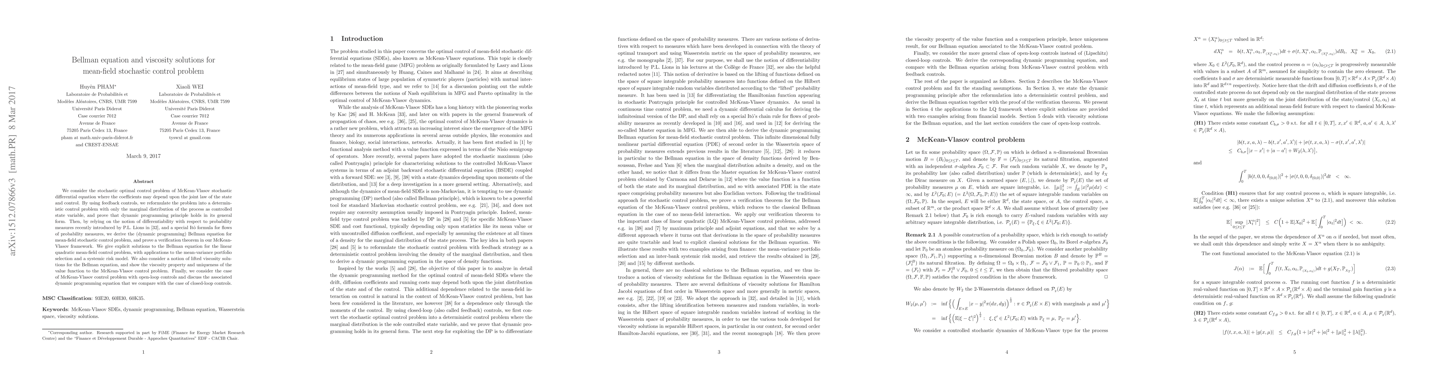 We consider the stochastic optimal control problem of McKean-Vlasov stochastic differential equation where the coefficients may depend upon the joint law of the state and control. By using feedback controls, we reformulate the problem into a deterministic control problem with only the marginal distribution of the process as controlled state variable, and prove that dynamic programming principle holds in its general form. Then, by relying on the notion of differentiability with respect to pro\-bability measures recently introduced by P.L. Lions in [32], and a special It{\^o} formula for flows of probability measures, we derive the (dynamic programming) Bellman equation for mean-field stochastic control problem, and prove a veri\-fication theorem in our McKean-Vlasov framework. We give explicit solutions to the Bellman equation for the linear quadratic mean-field control problem, with applications to the mean-variance portfolio selection and a systemic risk model. We also consider a notion of lifted visc-sity solutions for the Bellman equation, and show the viscosity property and uniqueness of the value function to the McKean-Vlasov control problem. Finally, we consider the case of McKean-Vlasov control problem with open-loop controls and discuss the associated dynamic programming equation that we compare with the case of closed-loop controls.