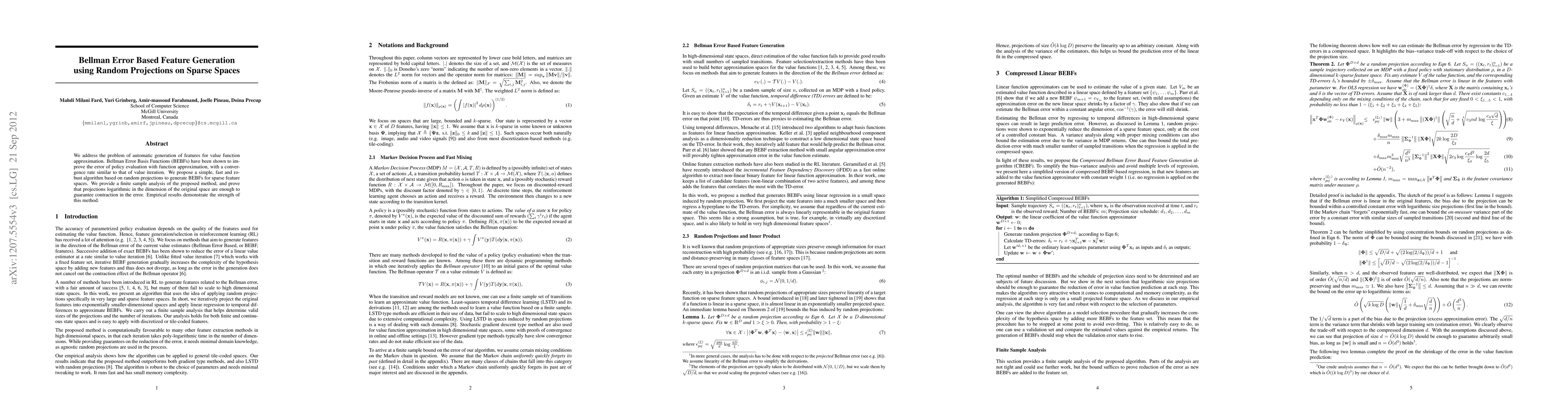 A new algorithm uses random projections to generate features for value function approximation that improves policy evaluation error, with empirical results demonstrating its strength and convergence rate similar to value iteration.