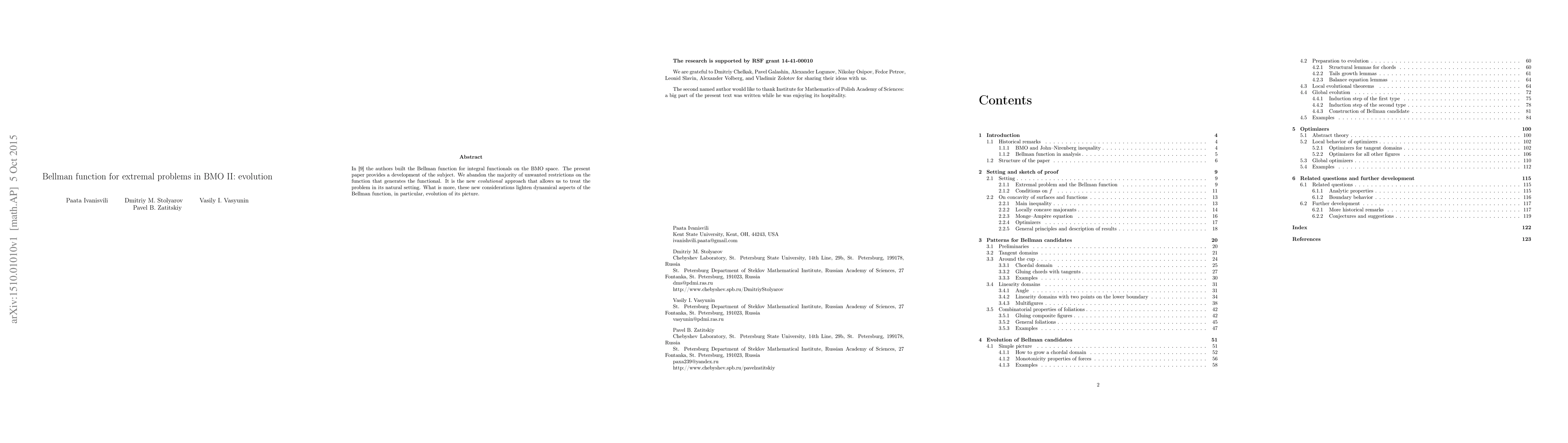 In the paper "Bellman function for extremal problems in $\mathrm{BMO}$", the authors built the Bellman function for integral functionals on the $\mathrm{BMO}$ space. The present paper provides a development of the subject. We abandon the majority of unwanted restrictions on the function that generates the functional. It is the new evolutional approach that allows us to treat the problem in its natural setting. What is more, these new considerations lighten dynamical aspects of the Bellman function, in particular, evolution of its picture.