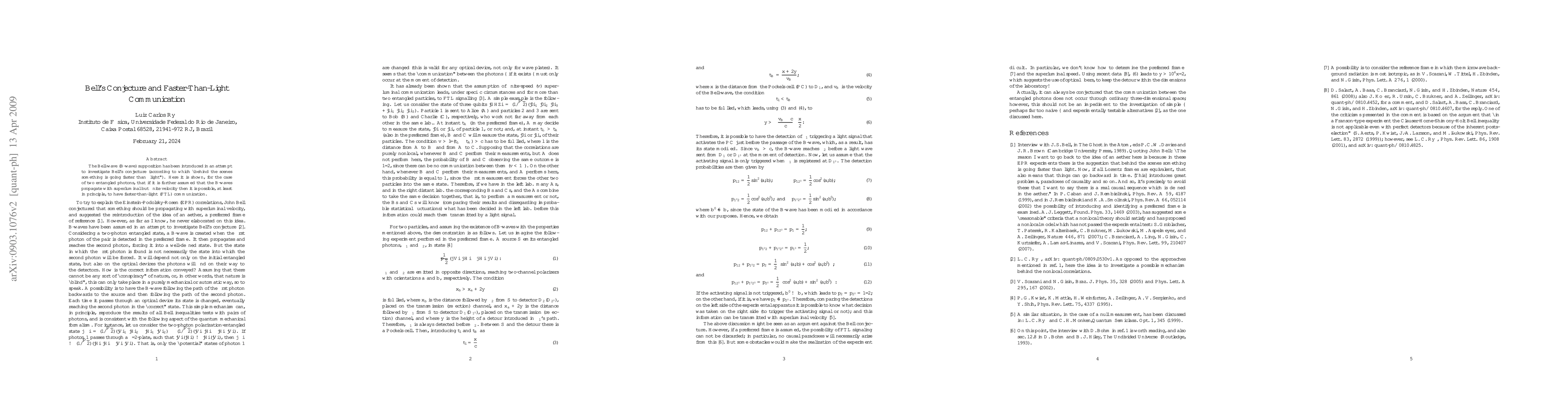 Summary: This paper explores Bell's conjecture, suggesting that "behind the scenes something is going faster than light," and demonstrates that if Bell-waves propagate with superluminal velocity, it is theoretically possible to achieve faster-than-light communication using entangled photons.