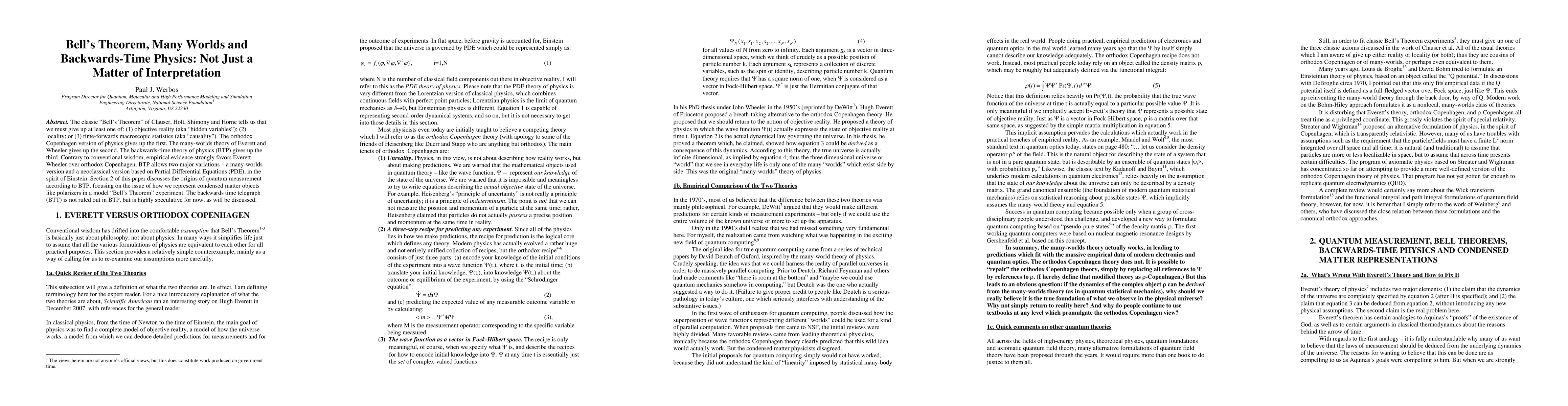 This paper explores the implications of Bell's Theorem, comparing interpretations of quantum mechanics, including the many-worlds theory and a backwards-time physics (BTP) approach. It argues that empirical evidence supports the many-worlds interpretation over the Copenhagen interpretation, while BTP offers a novel perspective on time-reversed physics.