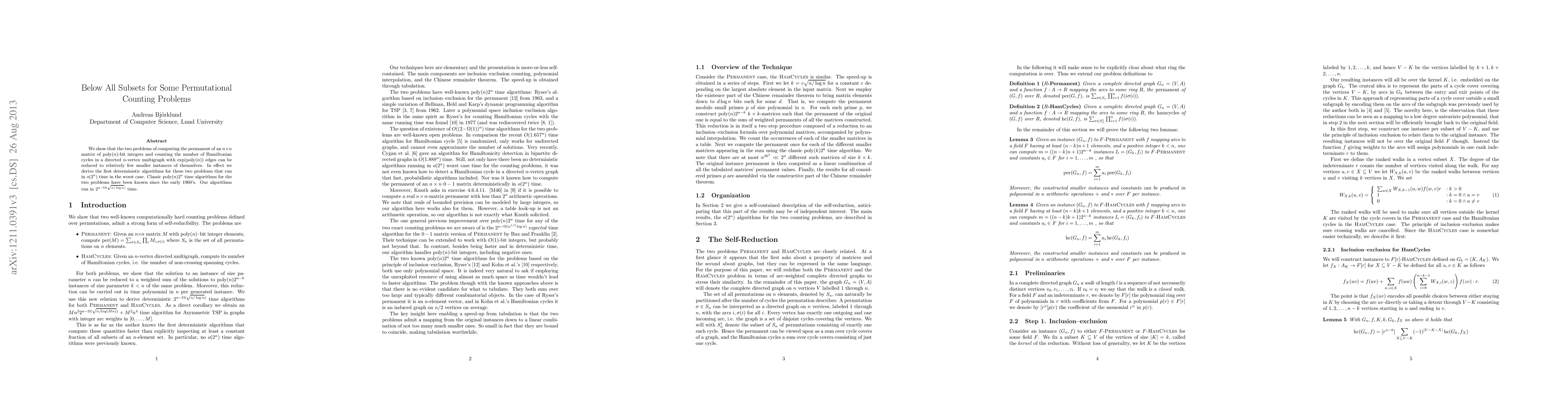 We show that the two problems of computing the permanent of an $n\times n$ matrix of $\operatorname{poly}(n)$-bit integers and counting the number of Hamiltonian cycles in a directed $n$-vertex multigraph with $\operatorname{exp}(\operatorname{poly}(n))$ edges can be reduced to relatively few smaller instances of themselves. In effect we derive the first deterministic algorithms for these two problems that run in $o(2^n)$ time in the worst case. Classic $\operatorname{poly}(n)2^n$ time algorithms for the two problems have been known since the early 1960's. Our algorithms run in $2^{n-\Omega(\sqrt{n/\log n})}$ time.