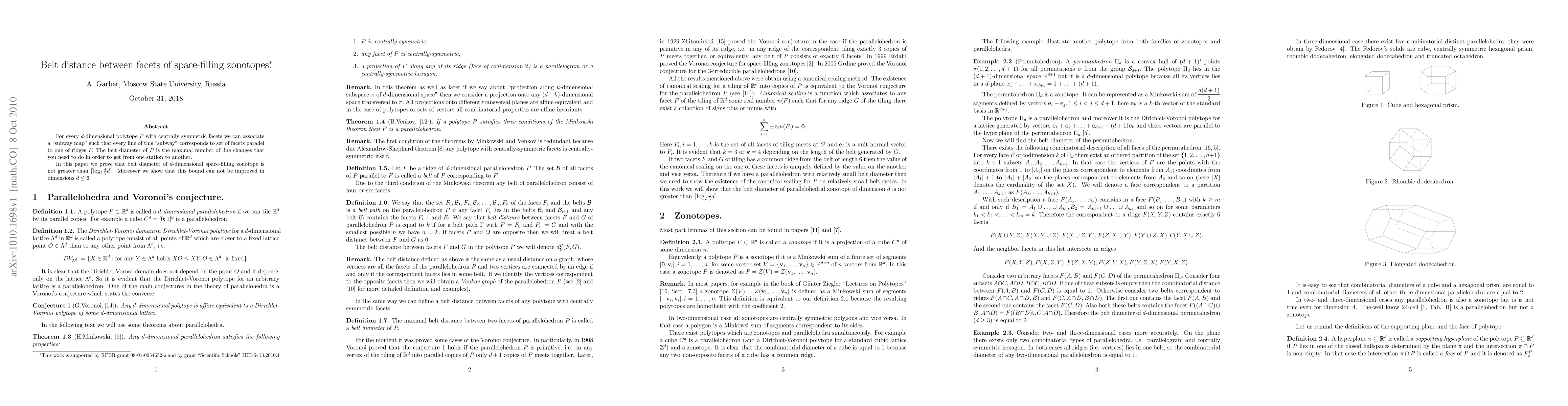 For every d-dimensional polytope P with centrally symmetric facets we can associate a "subway map" such that every line of this "subway" corresponds to set of facets parallel to one of ridges P. The belt diameter of P is the maximal number of line changes that you need to do in order to get from one station to another. In this paper we prove that belt diameter of d-dimensional space-filling zonotope is not greater than $\lceil \log_2\frac45d\rceil$. Moreover we show that this bound can not be improved in dimensions d at most 6.