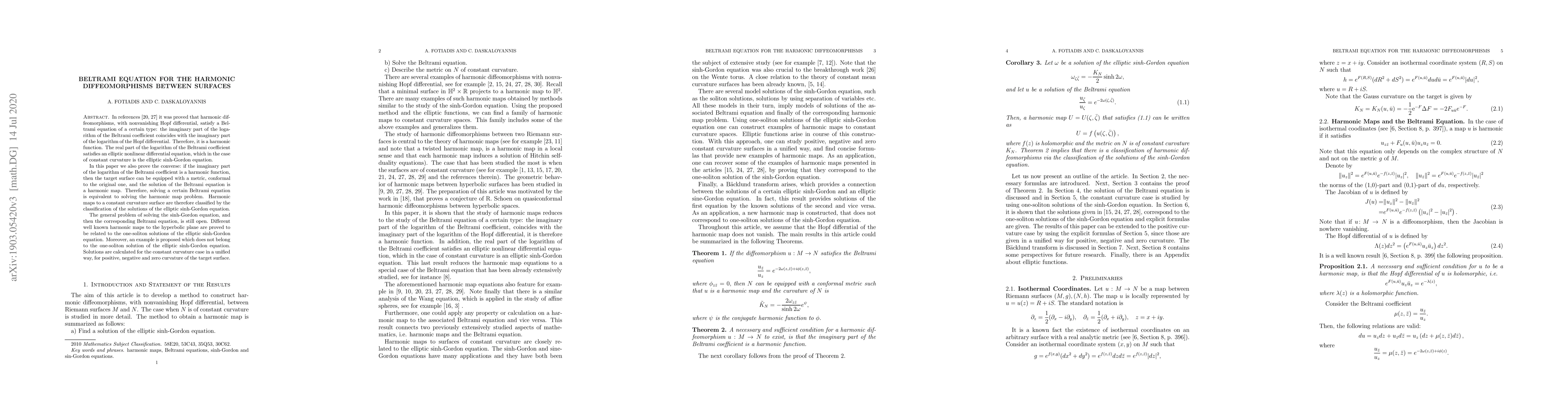This paper shows that harmonic diffeomorphisms between surfaces can be reduced to solving a specific nonlinear differential equation, the sinh-Gordon equation, which classifies harmonic maps by its solutions.