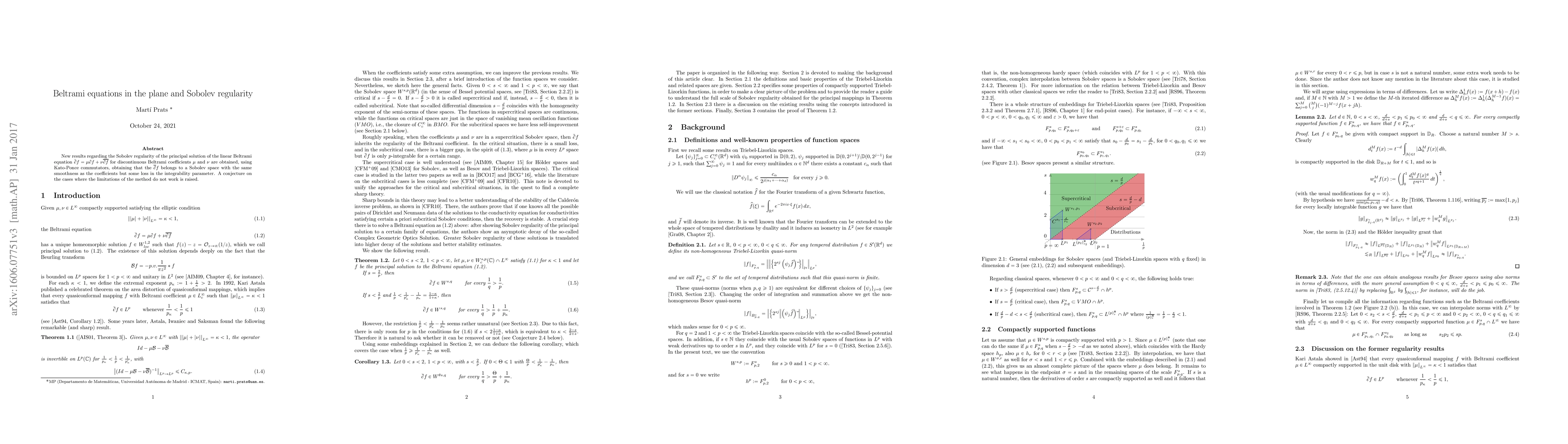 New results regarding the Sobolev regularity of the principal solution of the linear Beltrami equation $\bar{\partial} f = \mu \partial f + \nu \overline{\partial f}$ for discontinuous Beltrami coefficients $\mu$ and $\nu$ are obtained, using Kato-Ponce commutators, obtaining that $\overline \partial f$ belongs to a Sobolev space with the same smoothness as the coefficients but some loss in the integrability parameter. A conjecture on the cases where the limitations of the method do not work is raised.