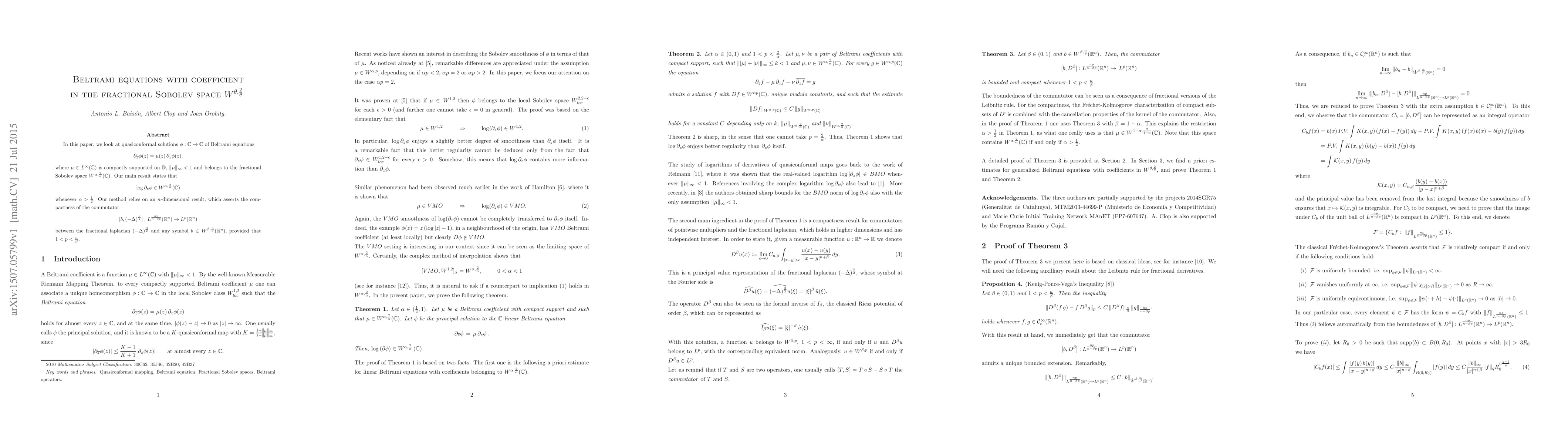In this paper, we look at quasiconformal solutions $\phi:\mathbb{C}\to\mathbb{C}$ of Beltrami equations $$ \partial_{\overline{z}} \phi(z)=\mu(z)\,\partial_z \phi (z). $$ where $\mu\in L^\infty(\mathbb{C})$ is compactly supported on $\mathbb{D}$, $\|\mu\|_\infty<1$ and belongs to the fractional Sobolev space $W^{\alpha, \frac2\alpha}(\mathbb{C})$. Our main result states that $$\log\partial_z\phi \in W^{\alpha, \frac2\alpha}(\mathbb{C})$$ whenever $\alpha>\frac12$. Our method relies on an $n$-dimensional result, which asserts the compactness of the commutator $$[b,(-\Delta)^\frac{\beta}{2}]:L^\frac{np}{n-\beta p}(\mathbb{R}^n)\to L^p(\mathbb{R}^n)$$ between the fractional laplacian $(-\Delta)^\frac\beta2$ and any symbol $b\in W^{\beta,\frac{n}\beta}(\mathbb{R}^n)$, provided that $1