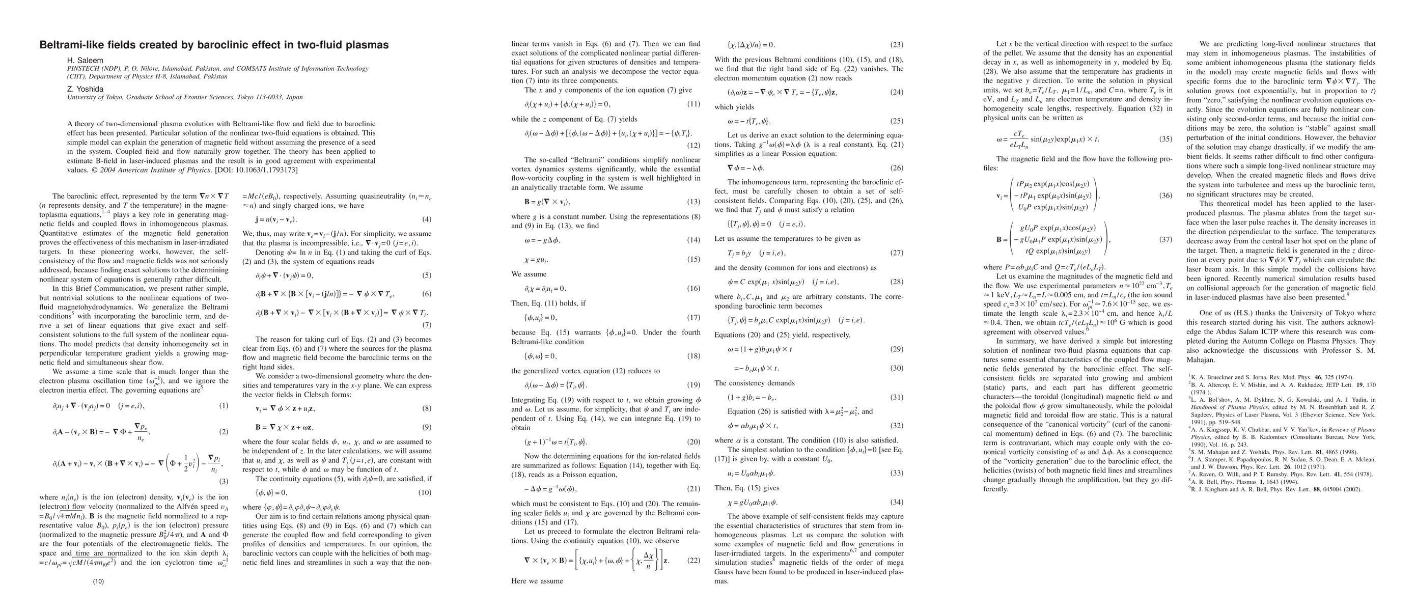 Researchers developed a new theory explaining how magnetic fields form in plasmas without needing a seed, using baroclinic effects and nonlinear equations.