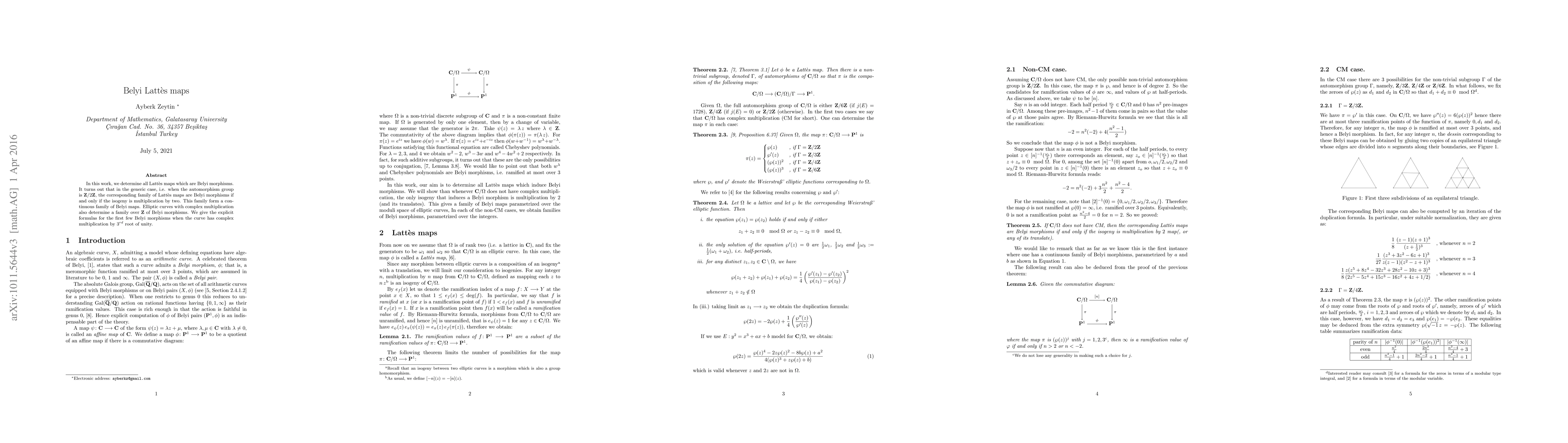 This paper identifies all Lattes maps that qualify as Belyi morphisms, revealing that for generic cases with $\ZZ/2\ZZ$ automorphism group, the corresponding family is Belyi if the isogeny multiplies by two. It also explores families of Belyi maps from elliptic curves with complex multiplication, specifically providing explicit formulas for such maps involving third roots of unity.
