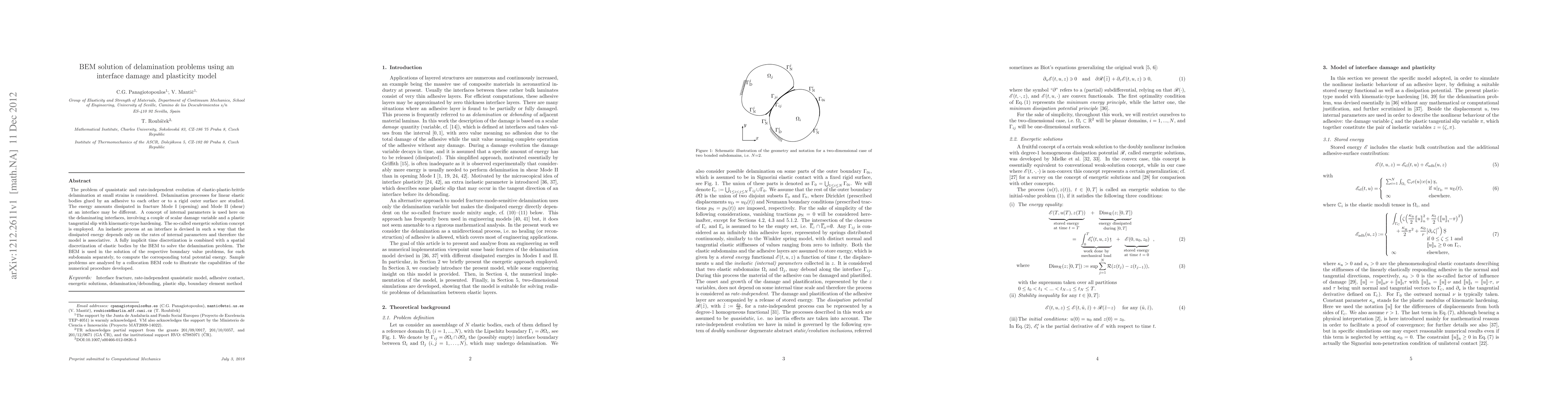 The main technical contribution of this work is the development of a BEM-based computational procedure for delamination problems using an energetic-solution framework, incorporating damage and plasticity in adhesive interfaces.