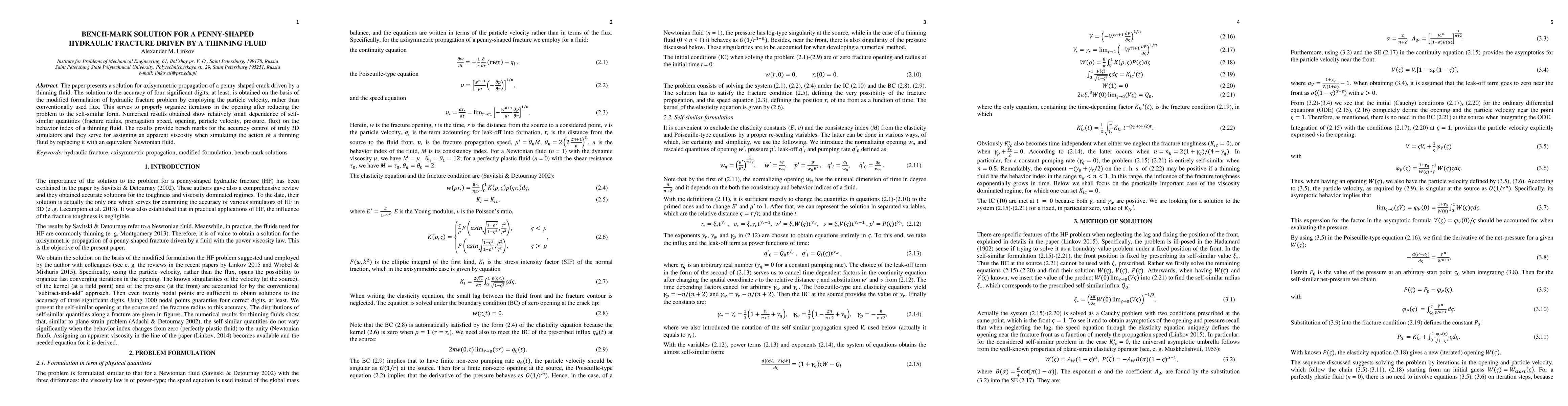 The paper provides a high-precision solution for axisymmetric penny-shaped hydraulic fracture propagation driven by a thinning fluid, using particle velocity instead of flux. The results offer benchmarks for 3D simulators and help determine apparent viscosity for Newtonian fluid simulations.