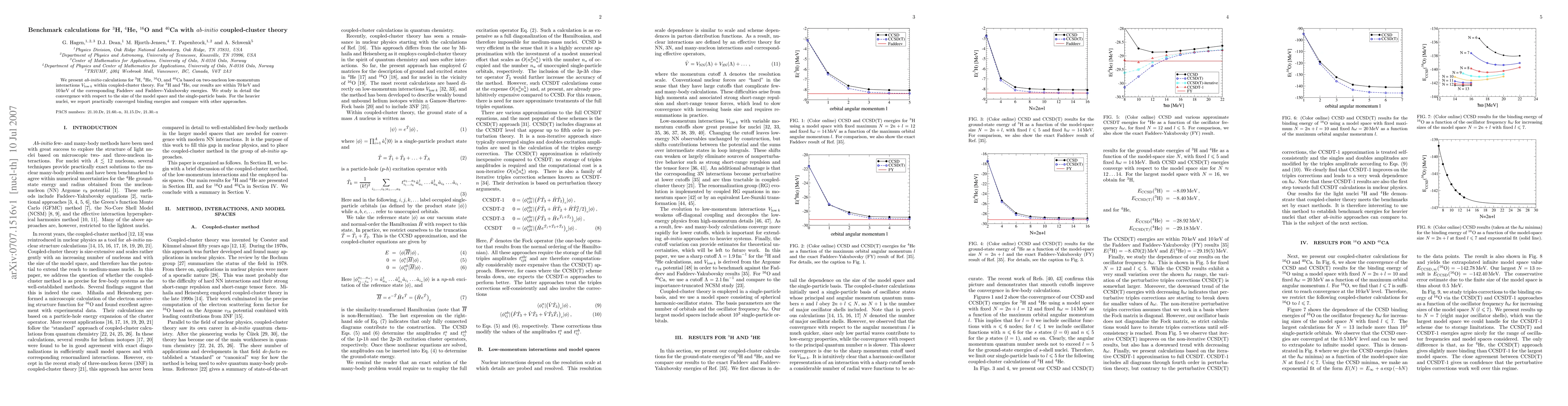 This paper reports ab-initio coupled-cluster calculations for 3H, 4He, 16O, and 40Ca using Vlowk interactions, achieving close agreement with experimental energies for 3H and 4He. The study examines convergence with model space and basis size, and provides practically converged binding energies for heavier nuclei.
