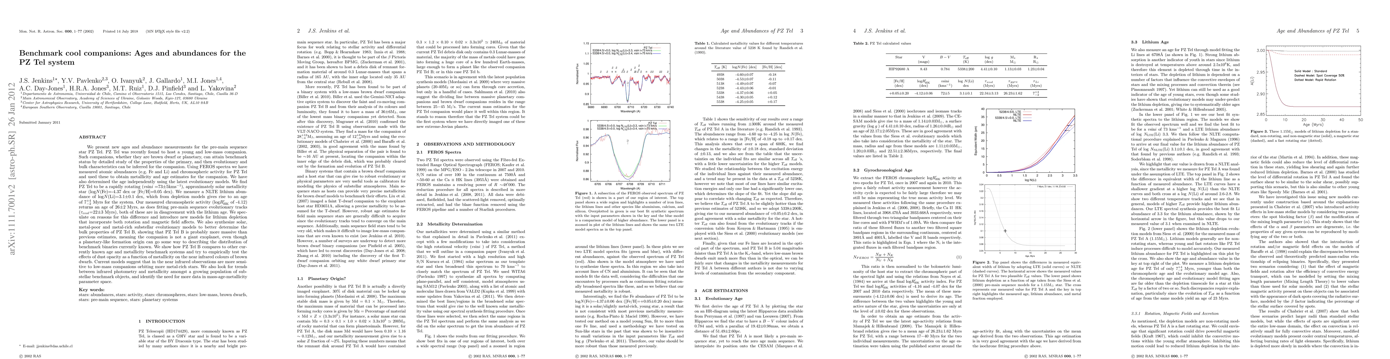 This paper presents new age and abundance estimates for the pre-main sequence star PZ Tel and its low-mass companion, PZ Tel B. The study finds PZ Tel B to be more massive than previously thought, likely ruling out it being a giant exoplanet, and discusses discrepancies in age estimates derived from different methods.