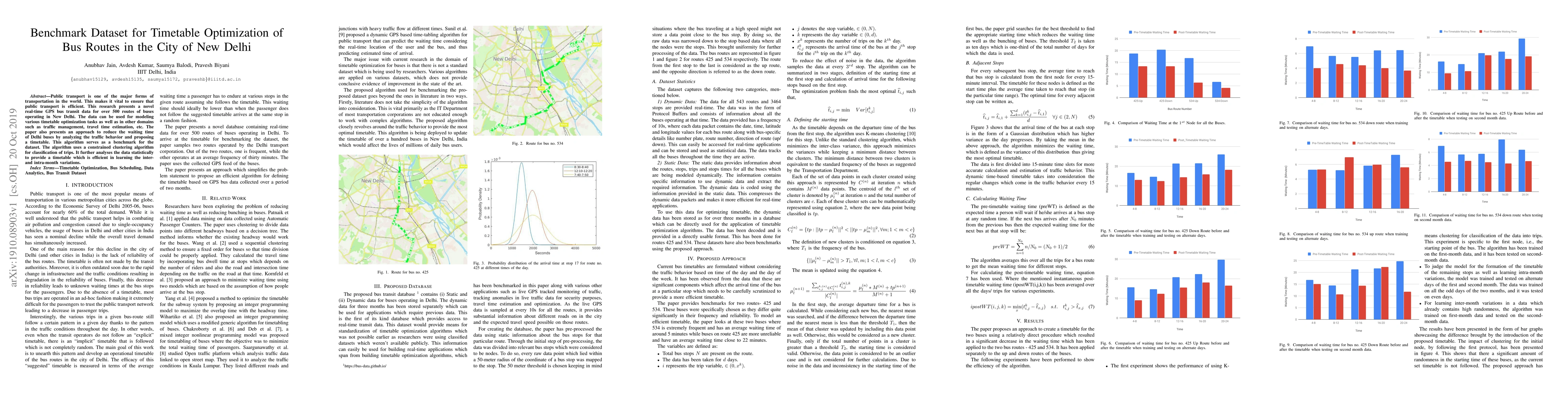A new dataset of GPS bus transit data for over 500 routes in New Delhi is introduced to optimize bus timetables, reducing waiting times through traffic analysis and statistical modeling.