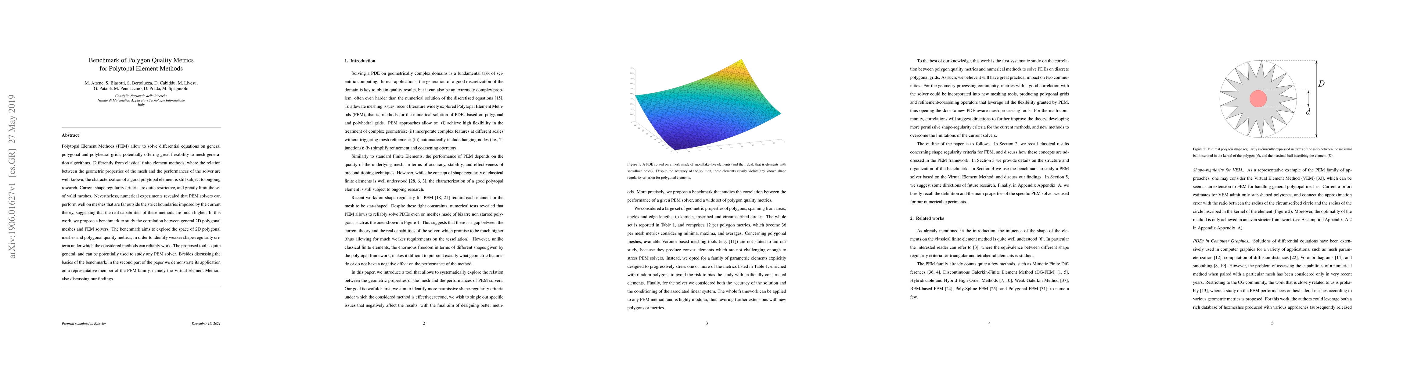 Polytopal Element Methods (PEM) allow to solve differential equations on general polygonal and polyhedral grids, potentially offering great flexibility to mesh generation algorithms. Differently from classical finite element methods, where the relation between the geometric properties of the mesh and the performances of the solver are well known, the characterization of a good polytopal element is still subject to ongoing research. Current shape regularity criteria are quite restrictive, and greatly limit the set of valid meshes. Nevertheless, numerical experiments revealed that PEM solvers can perform well on meshes that are far outside the strict boundaries imposed by the current theory, suggesting that the real capabilities of these methods are much higher. In this work, we propose a benchmark to study the correlation between general 2D polygonal meshes and PEM solvers. The benchmark aims to explore the space of 2D polygonal meshes and polygonal quality metrics, in order to identify weaker shape-regularity criteria under which the considered methods can reliably work. The proposed tool is quite general, and can be potentially used to study any PEM solver. Besides discussing the basics of the benchmark, in the second part of the paper we demonstrate its application on a representative member of the PEM family, namely the Virtual Element Method, also discussing our findings.