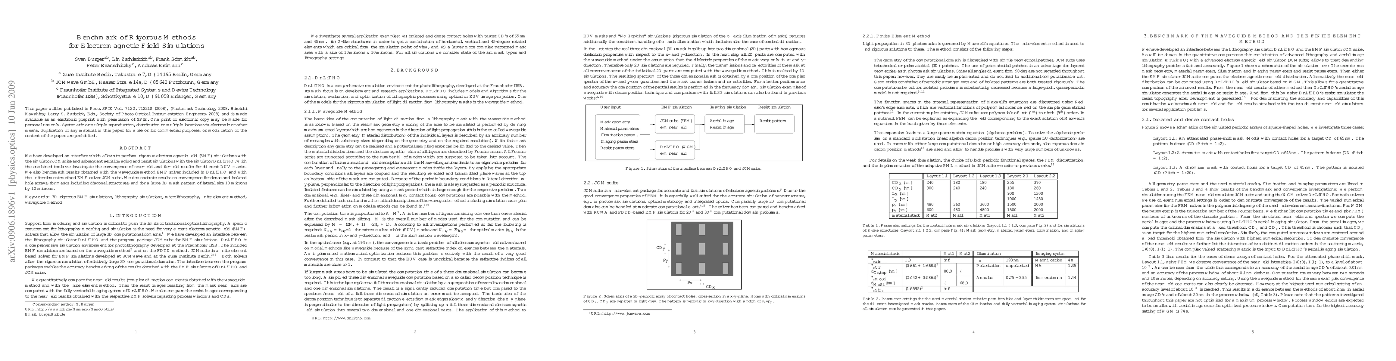 Researchers benchmarked rigorous methods for electromagnetic field simulations using tools like JCMsuite and Dr.LiTHO to investigate convergence of near-field and far-field results on different mask patterns.