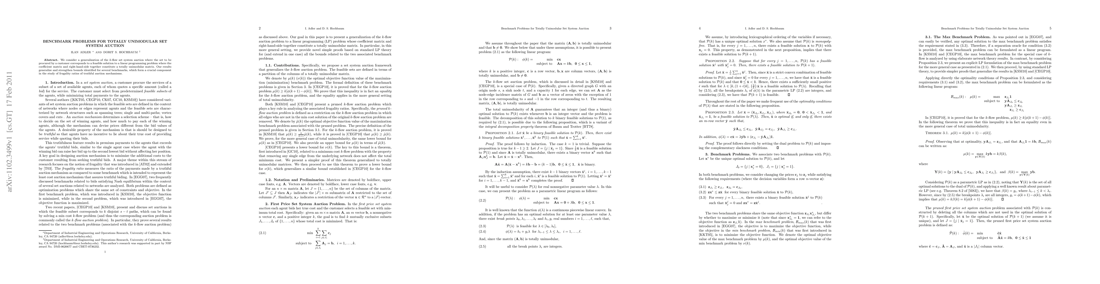 We consider a generalization of the $k$-flow set system auction where the set to be procured by a customer corresponds to a feasible solution to a linear programming problem where the coefficient matrix and right-hand-side together constitute a totally unimodular matrix. Our results generalize and strengthen bounds identified for several benchmarks, which form a crucial component in the study of frugality ratios of truthful auction mechanisms.