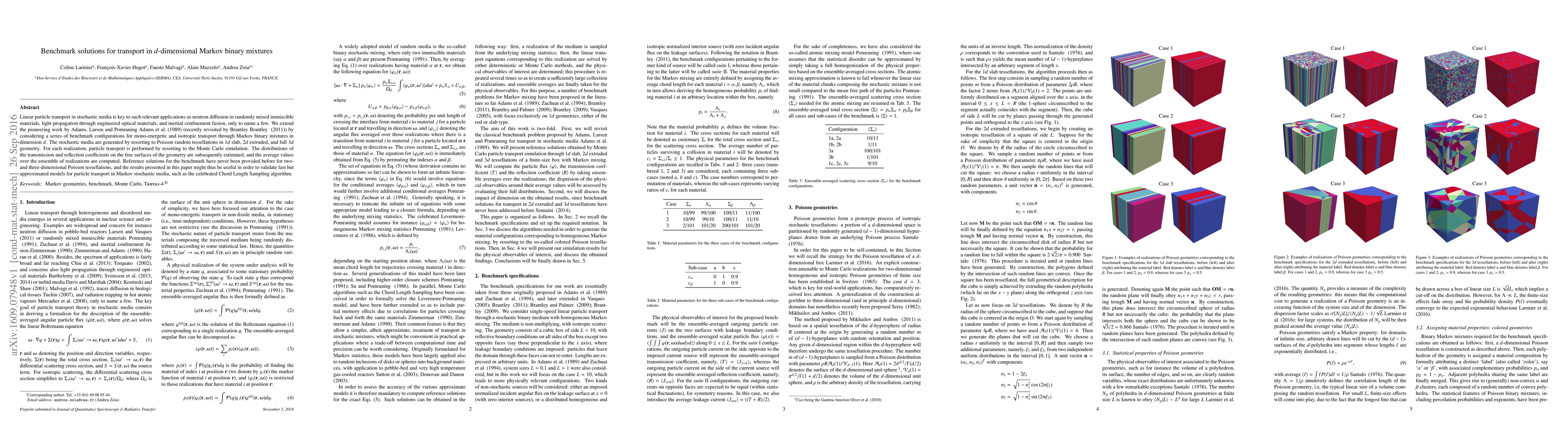 This paper presents benchmark solutions for transport in d-dimensional Markov binary mixtures, providing a framework for validating fast models of particle transport in stochastic media.