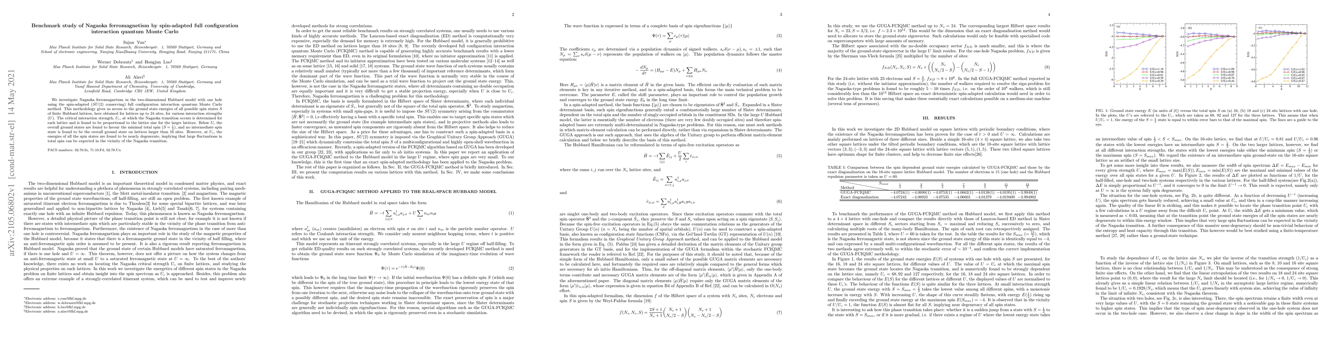 This study employs spin-adapted full configuration interaction quantum Monte Carlo to explore Nagaoka ferromagnetism in the two-dimensional Hubbard model with one hole, revealing a critical interaction strength proportional to lattice size where spin states nearly degenerate, indicating significant spin fluctuations near the transition.
