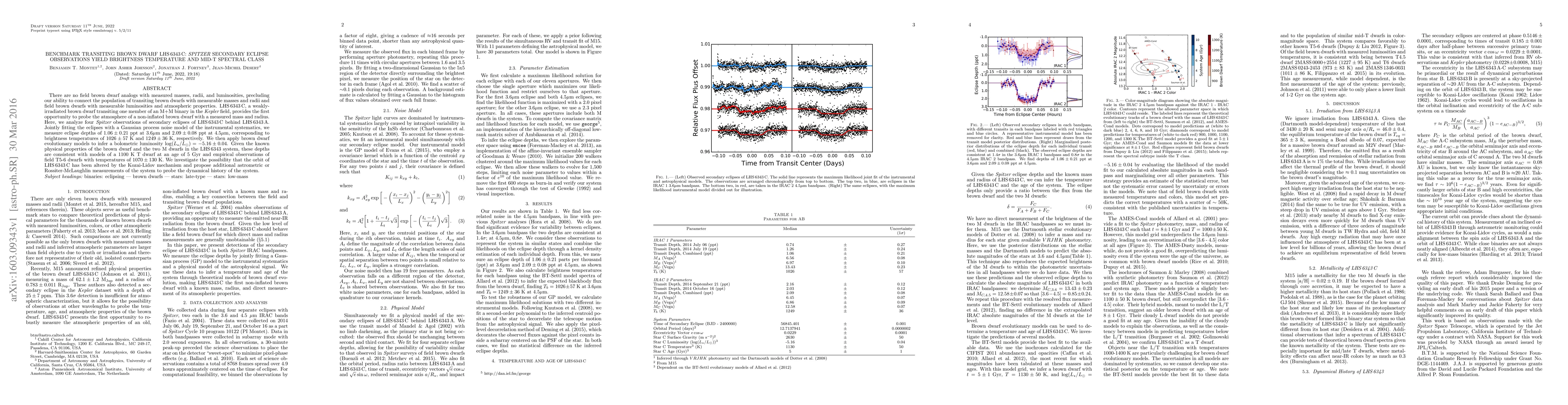 This research utilizes Spitzer secondary eclipse observations to determine the brightness temperature and spectral class of the transiting brown dwarf LHS 6343 C. The study finds brightness temperatures of 1026 K and 1249 K, corresponding to a spectral class of T5-6, and suggests the need for further astrometric studies to explore the system's dynamical history.