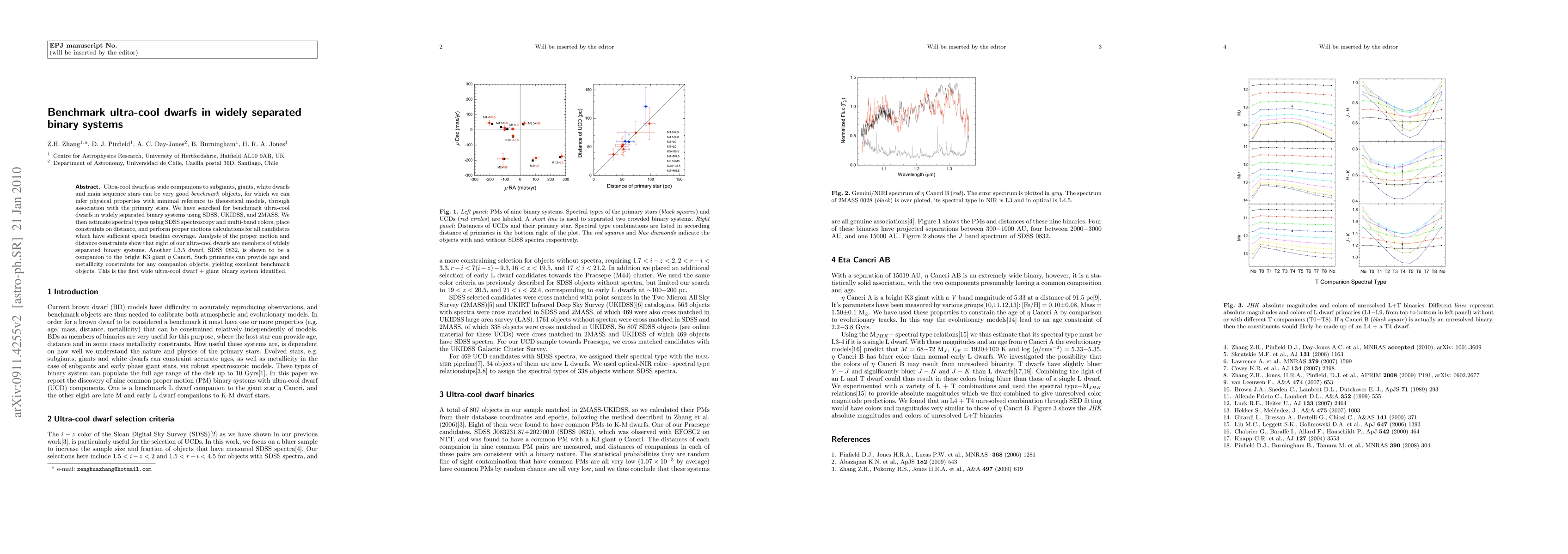 This paper identifies ultra-cool dwarfs as companions to various primary stars in widely separated binary systems, providing benchmarks for physical property inference. Eight ultra-cool dwarfs are confirmed as binary companions, including the first identified wide ultra-cool dwarf + giant binary system, SDSS 0832 with Eta Cancri.