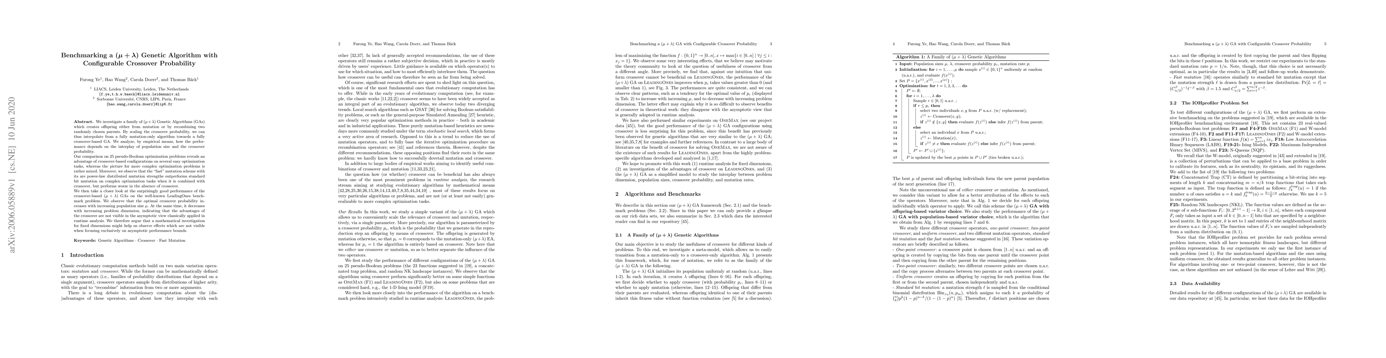 We investigate a family of $(\mu+\lambda)$ Genetic Algorithms (GAs) which creates offspring either from mutation or by recombining two randomly chosen parents. By scaling the crossover probability, we can thus interpolate from a fully mutation-only algorithm towards a fully crossover-based GA. We analyze, by empirical means, how the performance depends on the interplay of population size and the crossover probability. Our comparison on 25 pseudo-Boolean optimization problems reveals an advantage of crossover-based configurations on several easy optimization tasks, whereas the picture for more complex optimization problems is rather mixed. Moreover, we observe that the ``fast'' mutation scheme with its are power-law distributed mutation strengths outperforms standard bit mutation on complex optimization tasks when it is combined with crossover, but performs worse in the absence of crossover. We then take a closer look at the surprisingly good performance of the crossover-based $(\mu+\lambda)$ GAs on the well-known LeadingOnes benchmark problem. We observe that the optimal crossover probability increases with increasing population size $\mu$. At the same time, it decreases with increasing problem dimension, indicating that the advantages of the crossover are not visible in the asymptotic view classically applied in runtime analysis. We therefore argue that a mathematical investigation for fixed dimensions might help us observe effects which are not visible when focusing exclusively on asymptotic performance bounds.