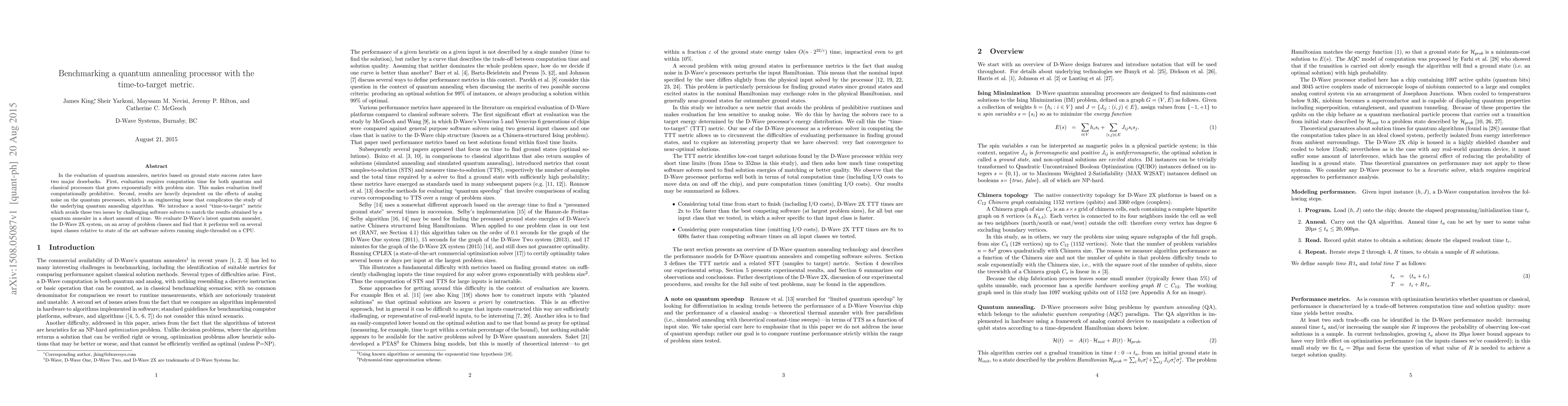 In the evaluation of quantum annealers, metrics based on ground state success rates have two major drawbacks. First, evaluation requires computation time for both quantum and classical processors that grows exponentially with problem size. This makes evaluation itself computationally prohibitive. Second, results are heavily dependent on the effects of analog noise on the quantum processors, which is an engineering issue that complicates the study of the underlying quantum annealing algorithm. We introduce a novel "time-to-target" metric which avoids these two issues by challenging software solvers to match the results obtained by a quantum annealer in a short amount of time. We evaluate D-Wave's latest quantum annealer, the D-Wave 2X system, on an array of problem classes and find that it performs well on several input classes relative to state of the art software solvers running single-threaded on a CPU.