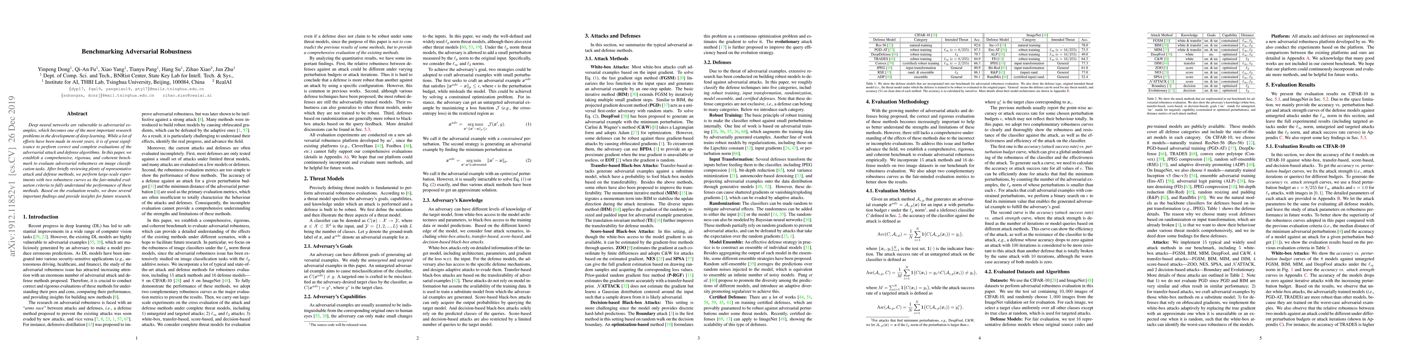 Deep neural networks are vulnerable to adversarial examples, which becomes one of the most important research problems in the development of deep learning. While a lot of efforts have been made in recent years, it is of great significance to perform correct and complete evaluations of the adversarial attack and defense algorithms. In this paper, we establish a comprehensive, rigorous, and coherent benchmark to evaluate adversarial robustness on image classification tasks. After briefly reviewing plenty of representative attack and defense methods, we perform large-scale experiments with two robustness curves as the fair-minded evaluation criteria to fully understand the performance of these methods. Based on the evaluation results, we draw several important findings and provide insights for future research.