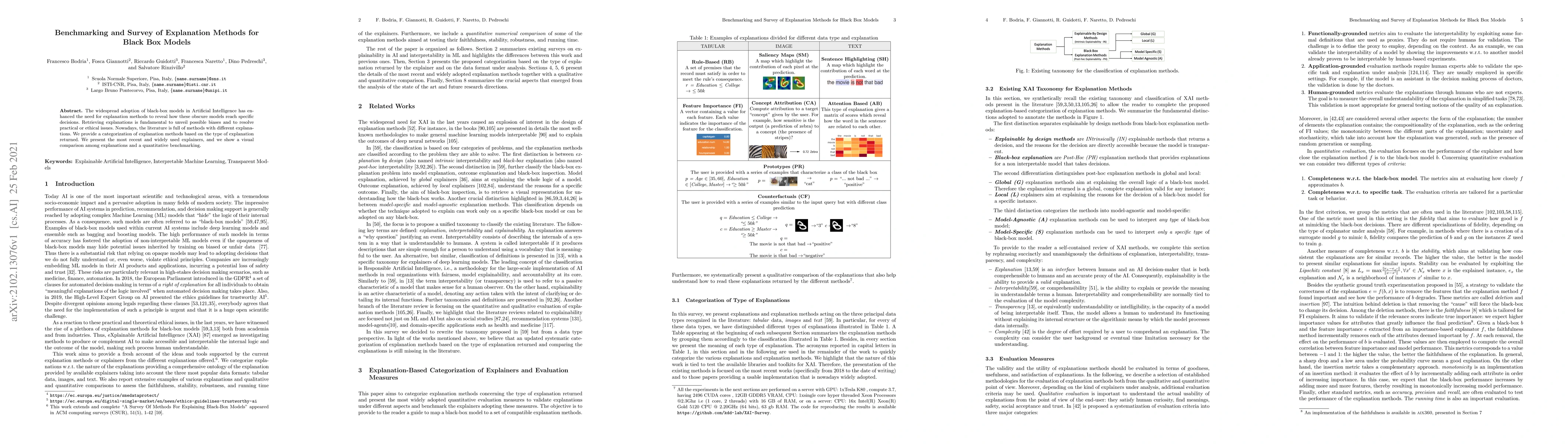 This paper categorizes explanation methods for black box models to reveal their decision-making processes, highlighting recent widely used explainers through visual comparison and quantitative benchmarking.
