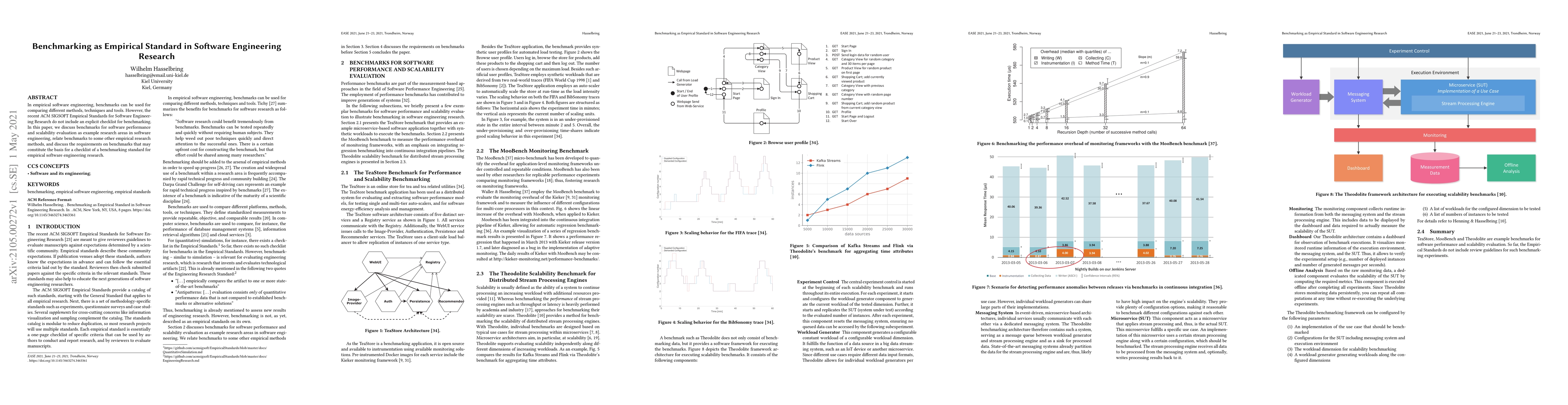 This paper explores the use of benchmarks in empirical software engineering for evaluating performance and scalability, highlighting the need for a standardized checklist for benchmarking in line with recent empirical research standards. It discusses the requirements for benchmarks to serve as a reliable empirical standard in software engineering research.